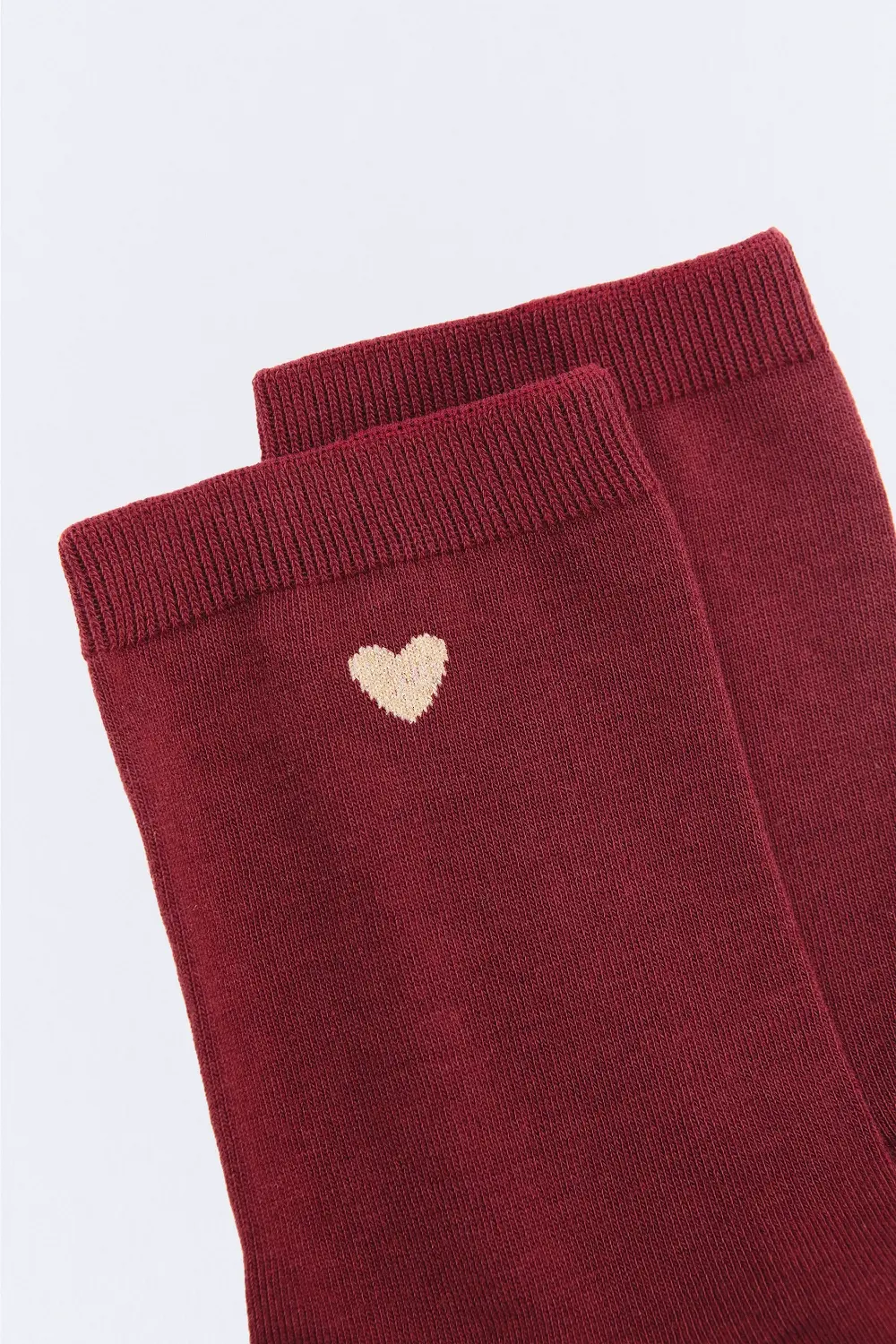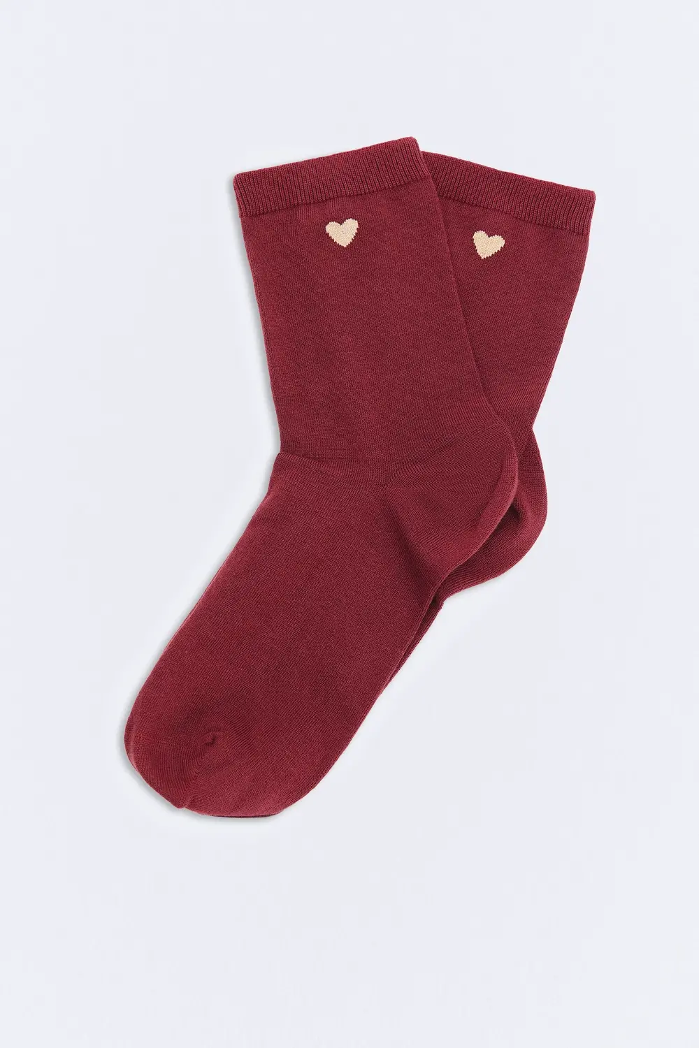 Product descriptionSku:304114-1140 // SOCKS.HEART SHORT Low-cut socks. Cotton blend fabric. Embroidered heart detail. In burgundy color. Height: 18 cm.