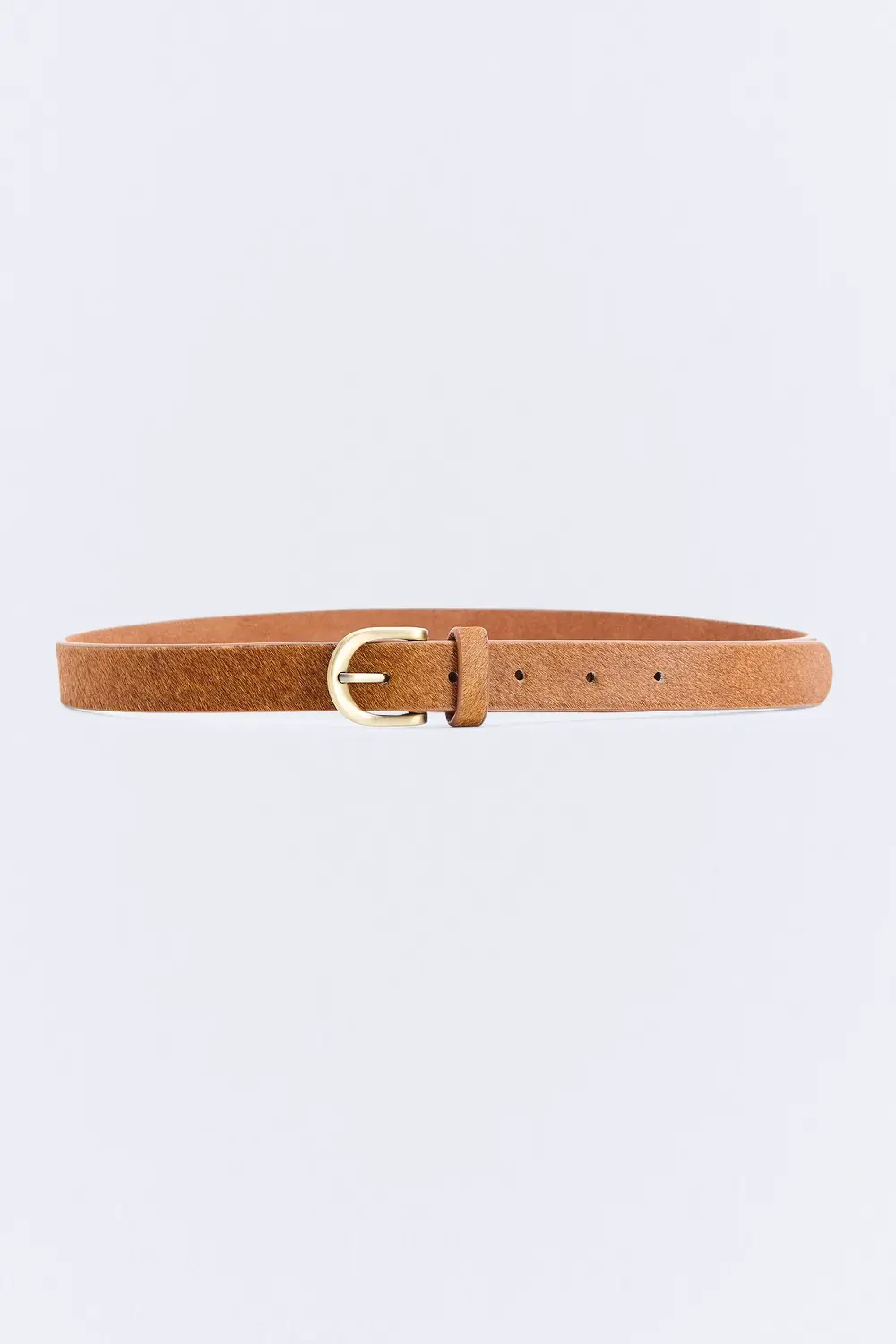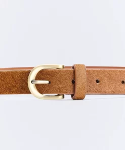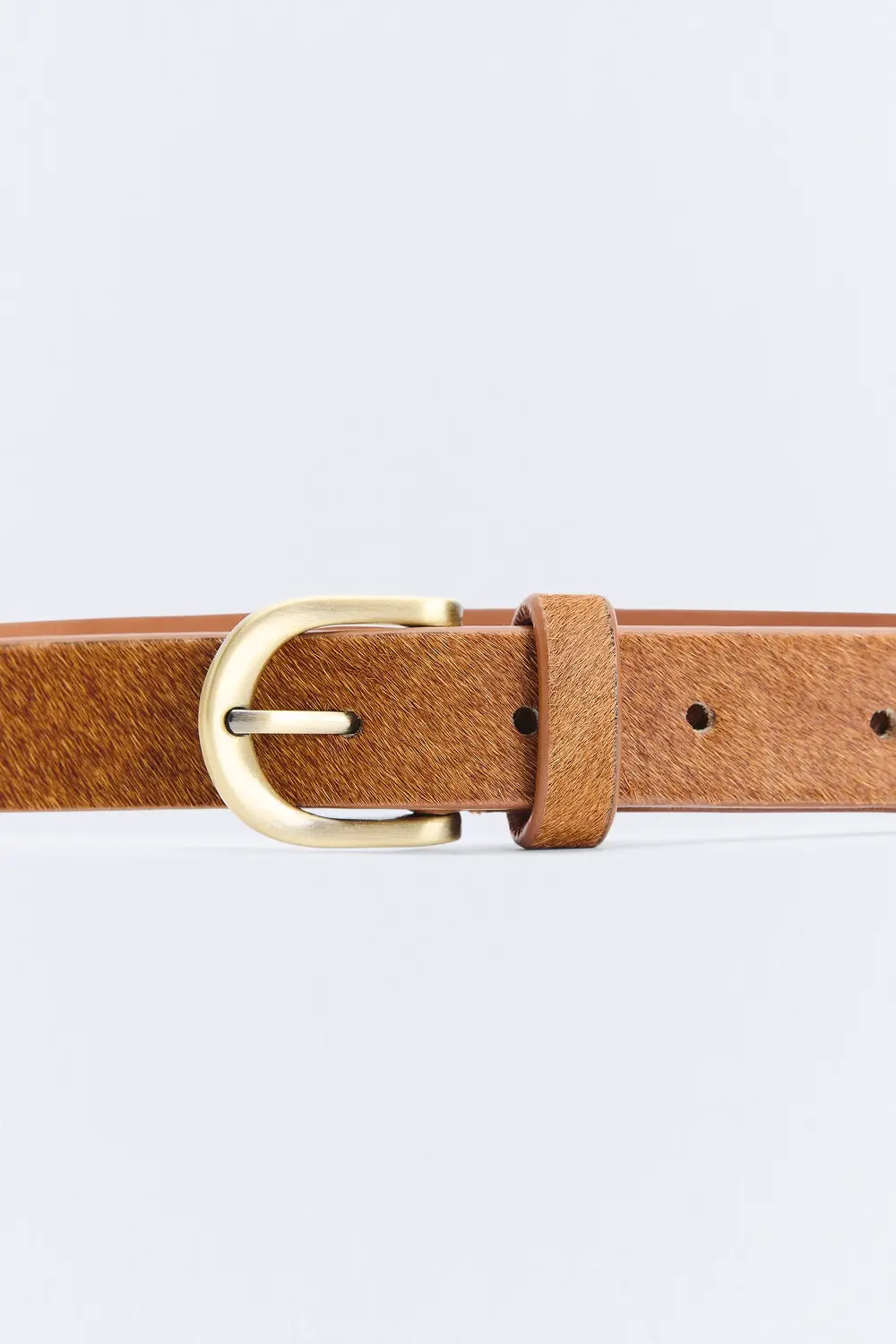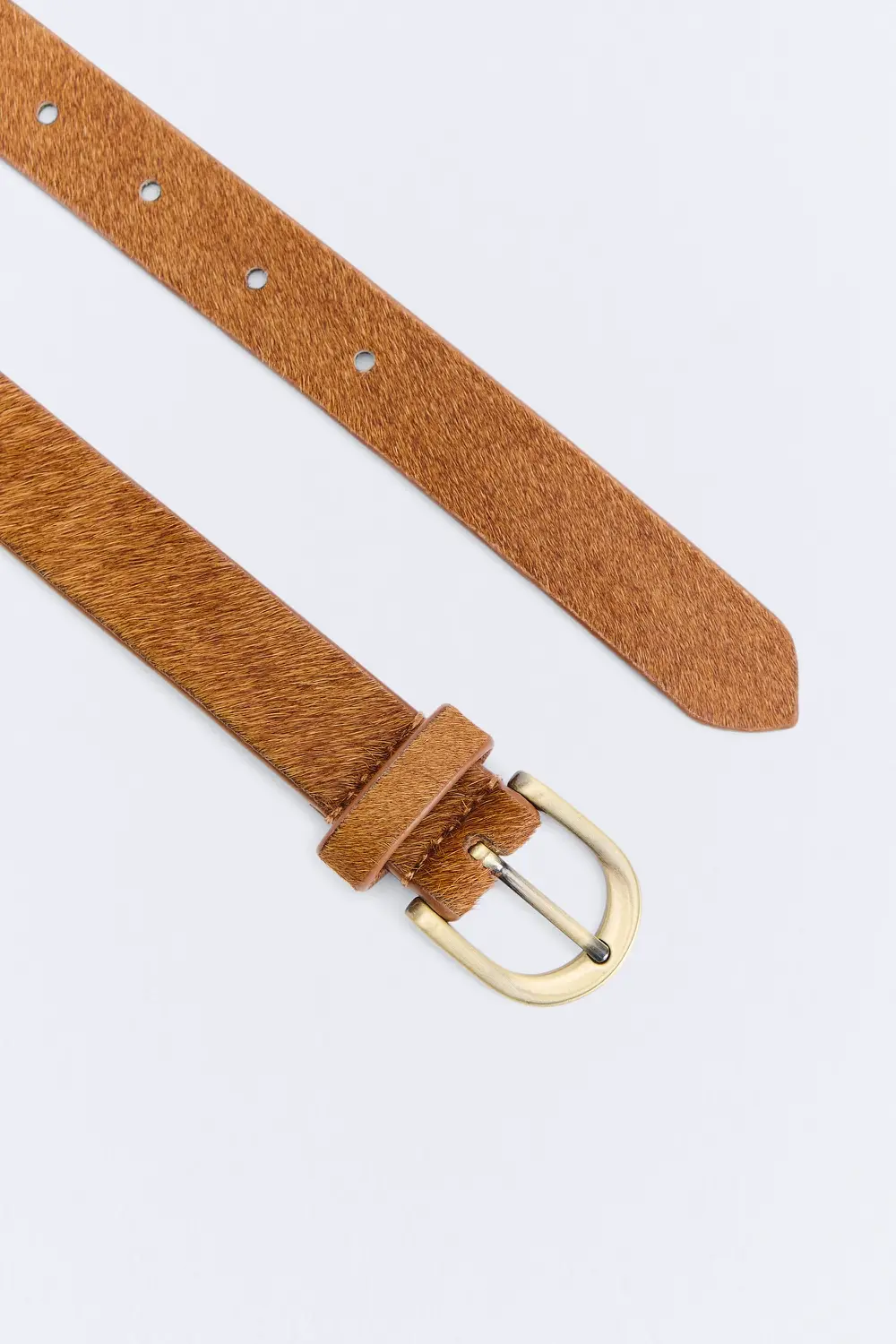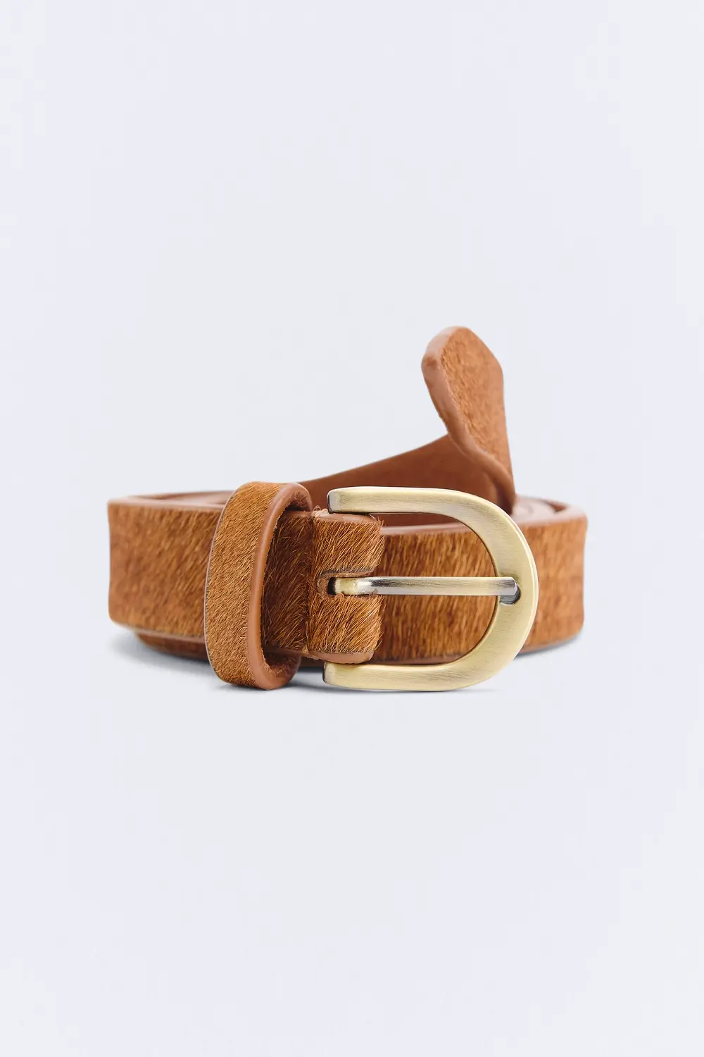 Product descriptionSku:303920-1080 // CINT.FUR Hair-on leather belt with gold buckle.
