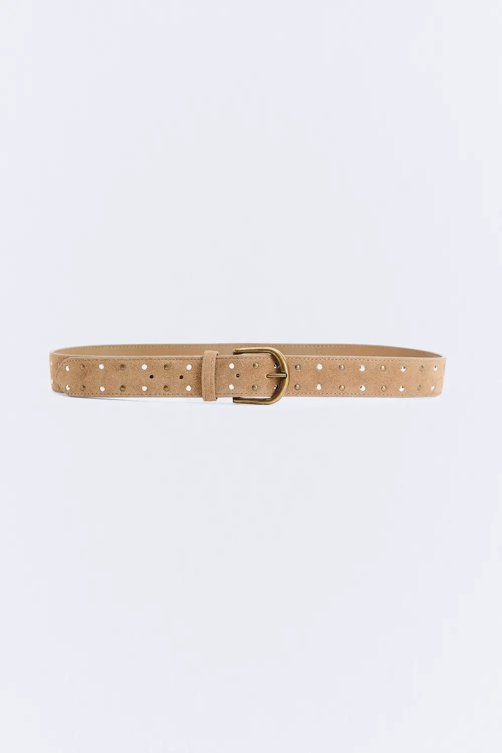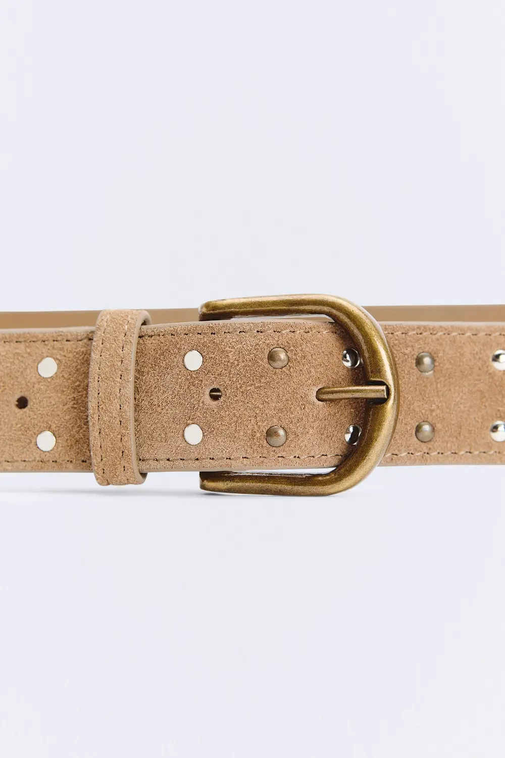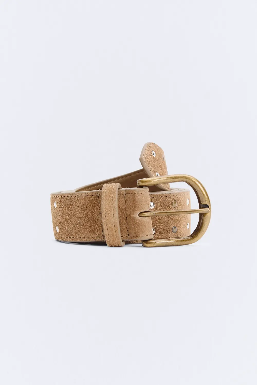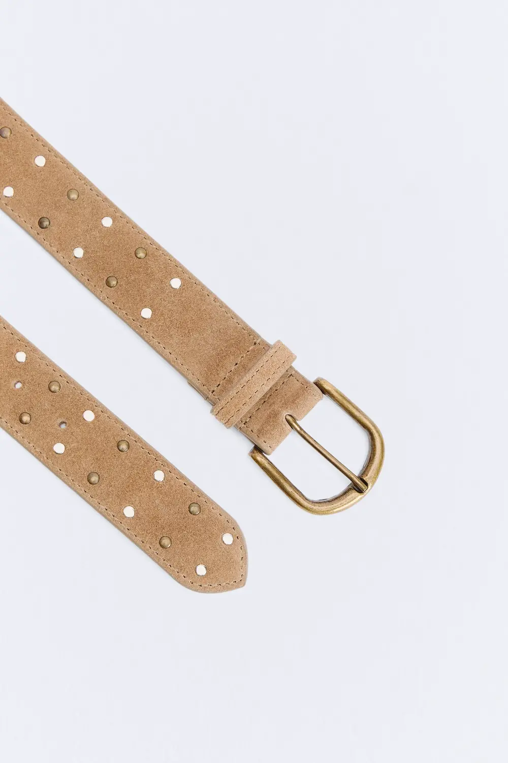 Product descriptionSku:303924-1080 // CINT.TEXAS SUEDE Suede belt with decorative studs and gold buckle.