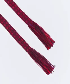 Product descriptionSku:304109-1140 // CINT.WAYUU THIN Fabric belt with fringed finish. In burgundy color.