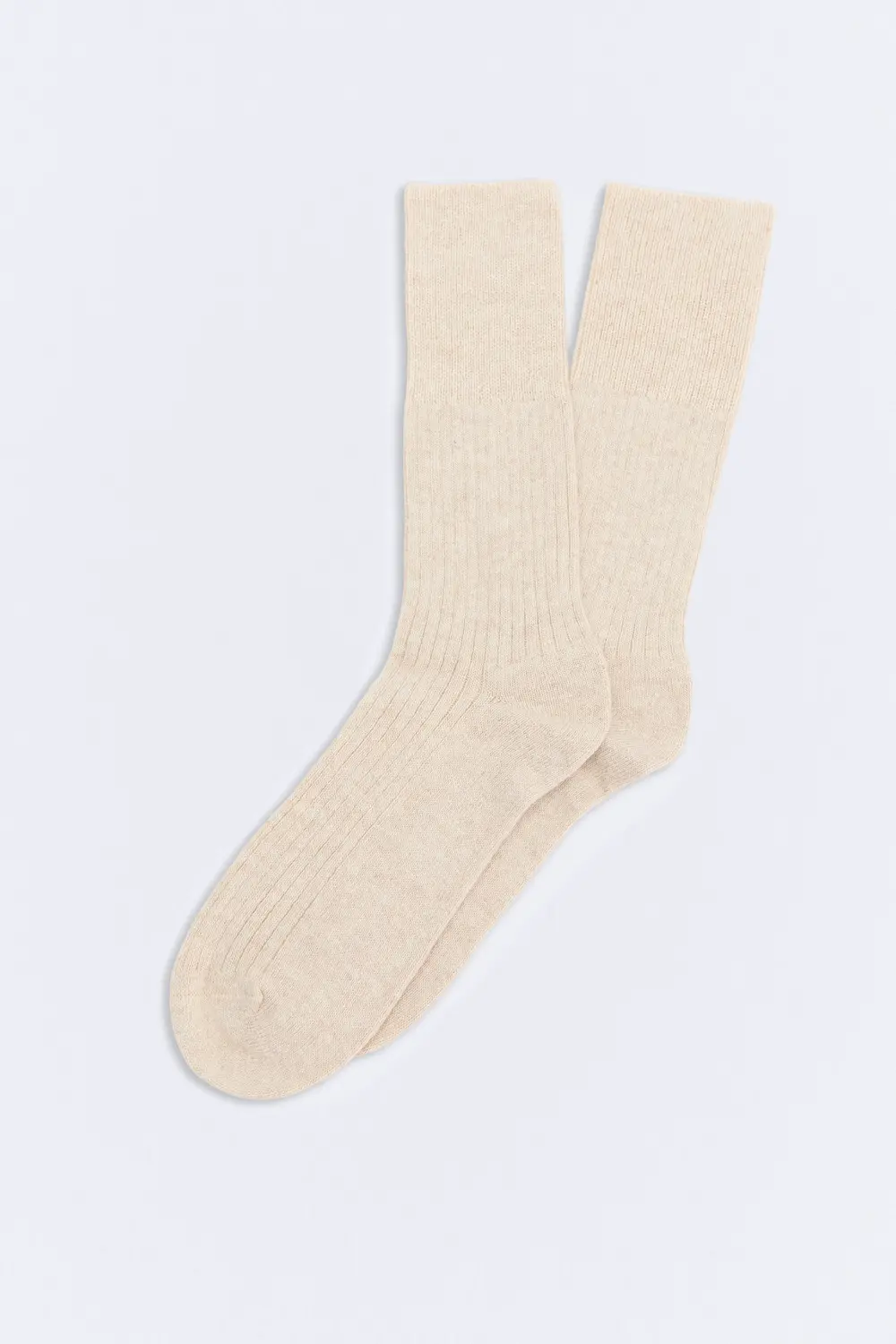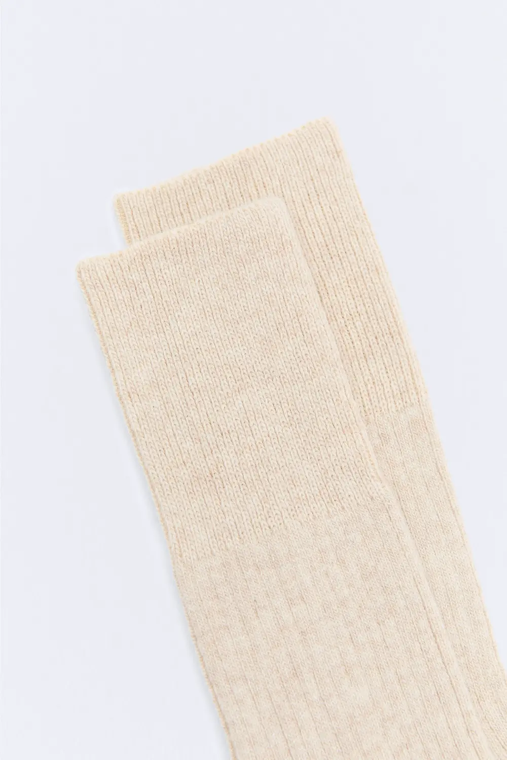 Product descriptionSku:304111-1050 // SOCKS.WOOL MEDIUM Mid-calf socks. Wool and cashmere blend. In oat color. Height: 25 cm.