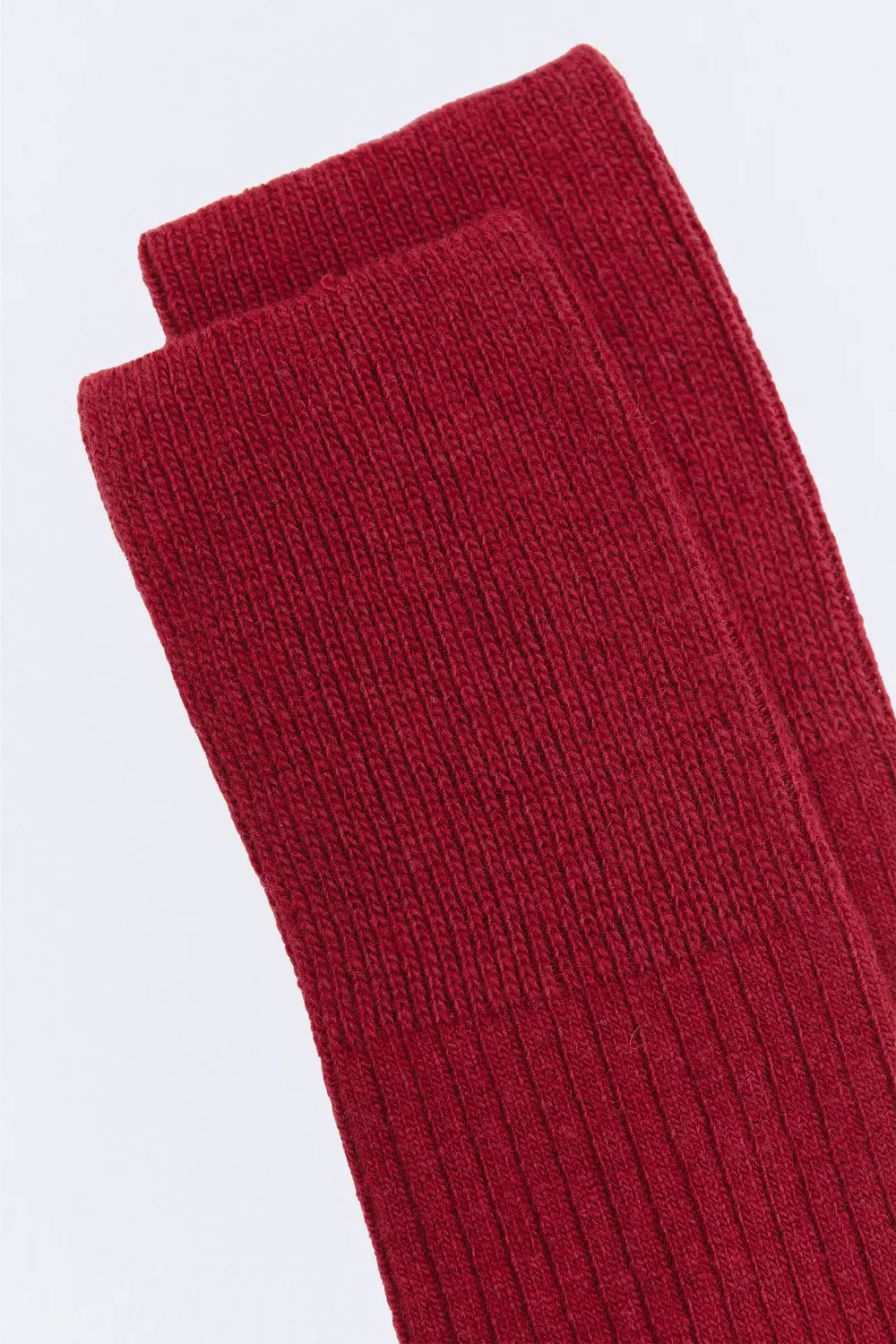 Product descriptionSku:304111-1180 // SOCKS.WOOL MEDIUM Mid-calf socks. Wool and cashmere blend. In red color. Height: 25 cm.