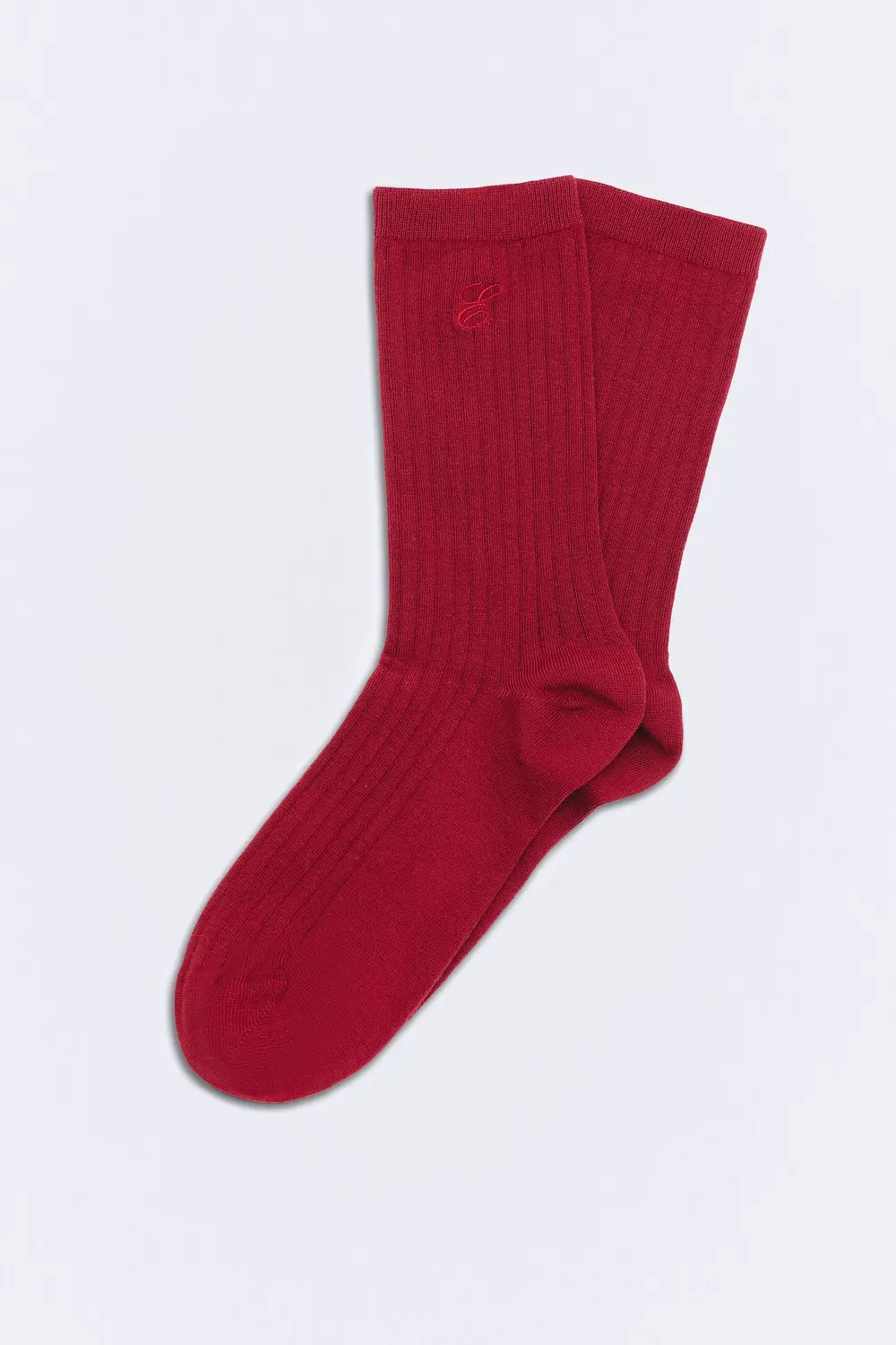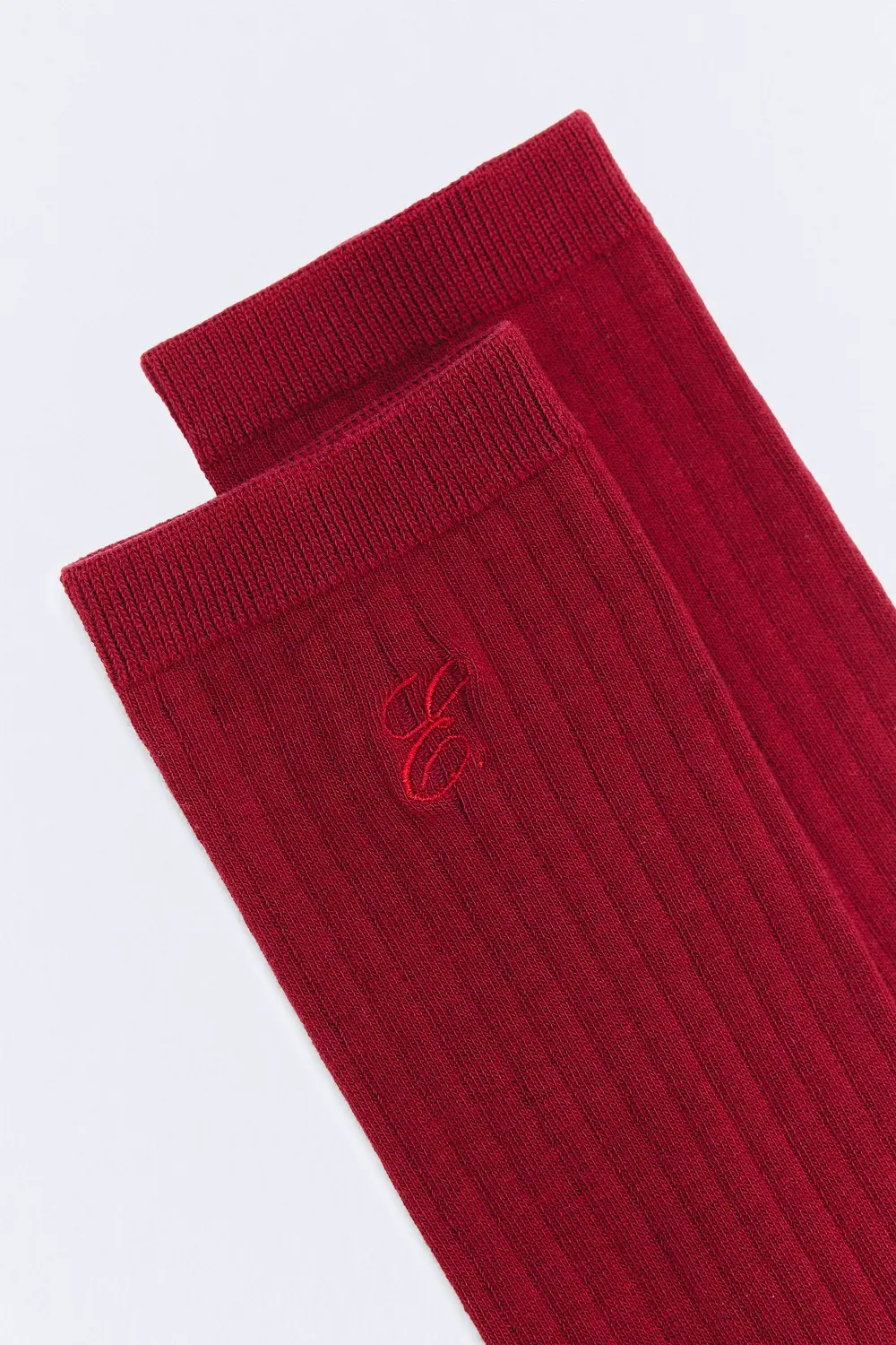 Product descriptionSku:304113-1140 // SOCKS.COTTON MEDIUM Mid-calf socks. Ribbed design. Cotton blend fabric. In red color. Height: 25 cm.
