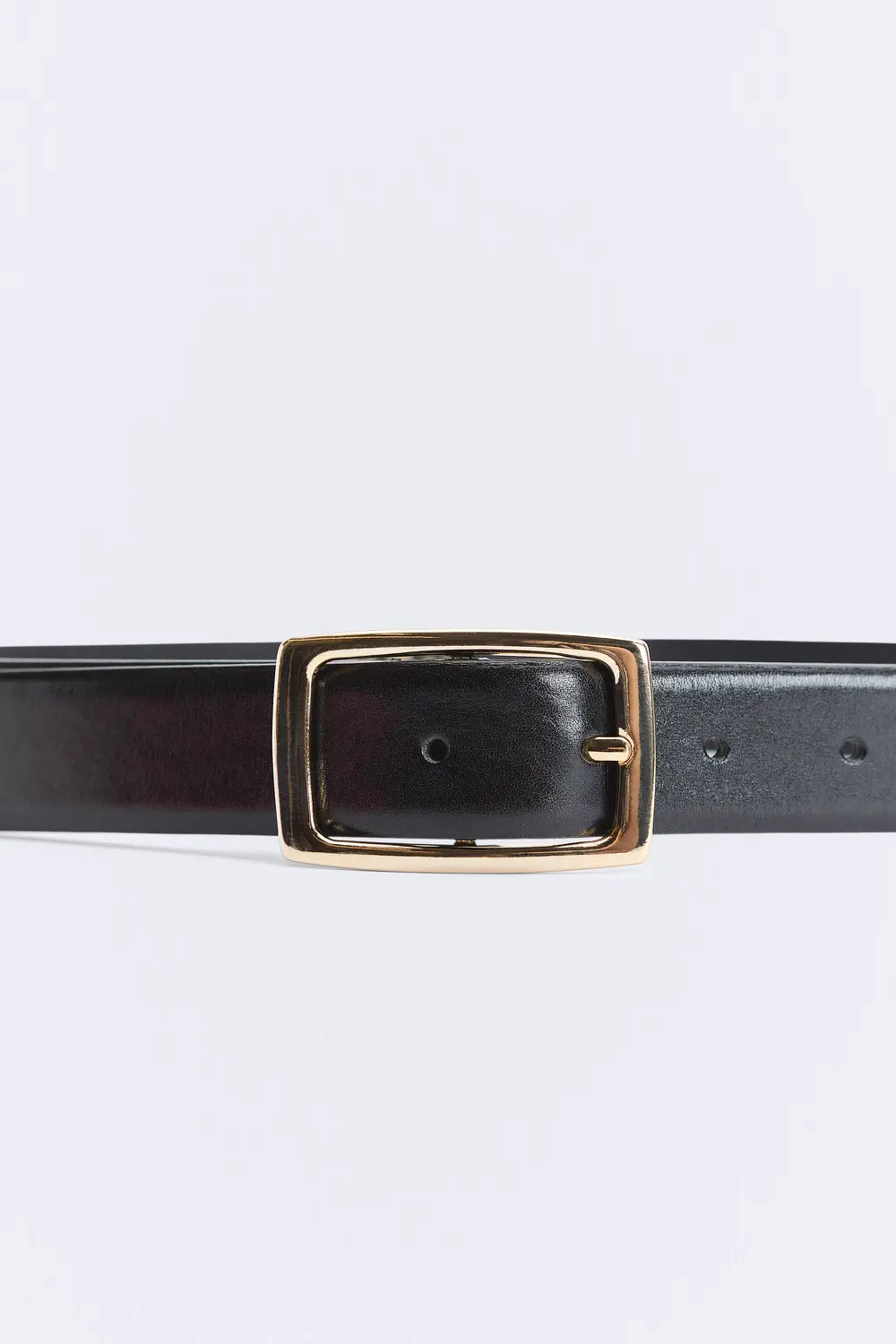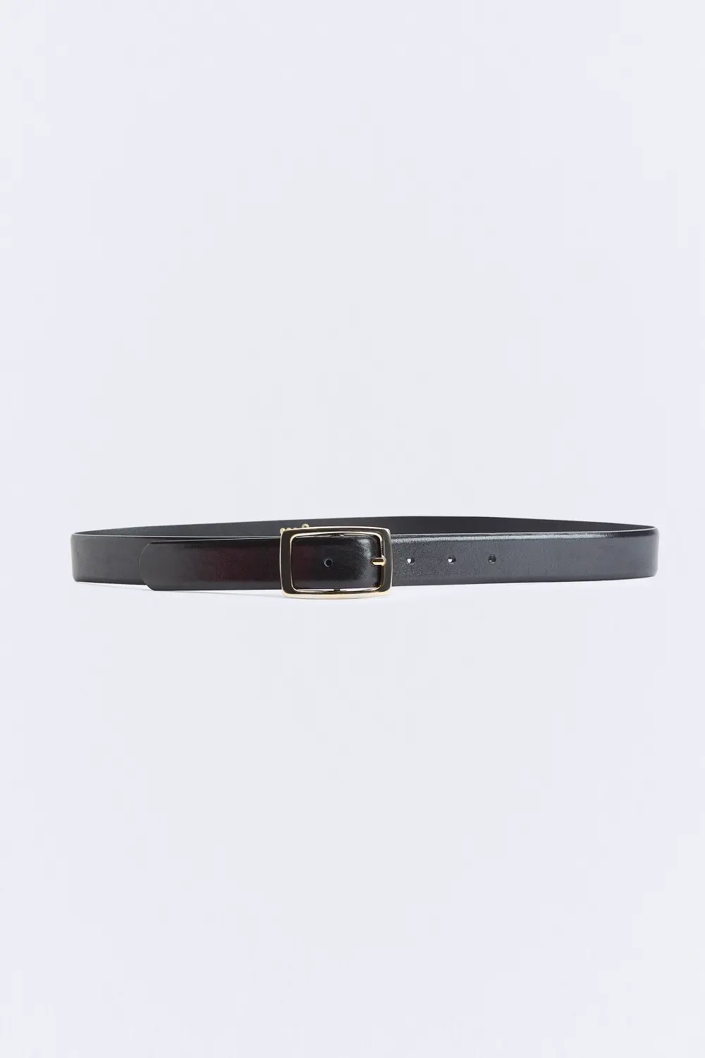 Product descriptionSku:304122-1100 // CINT.BASIC Nappa leather belt with shiny finish and gold buckle.