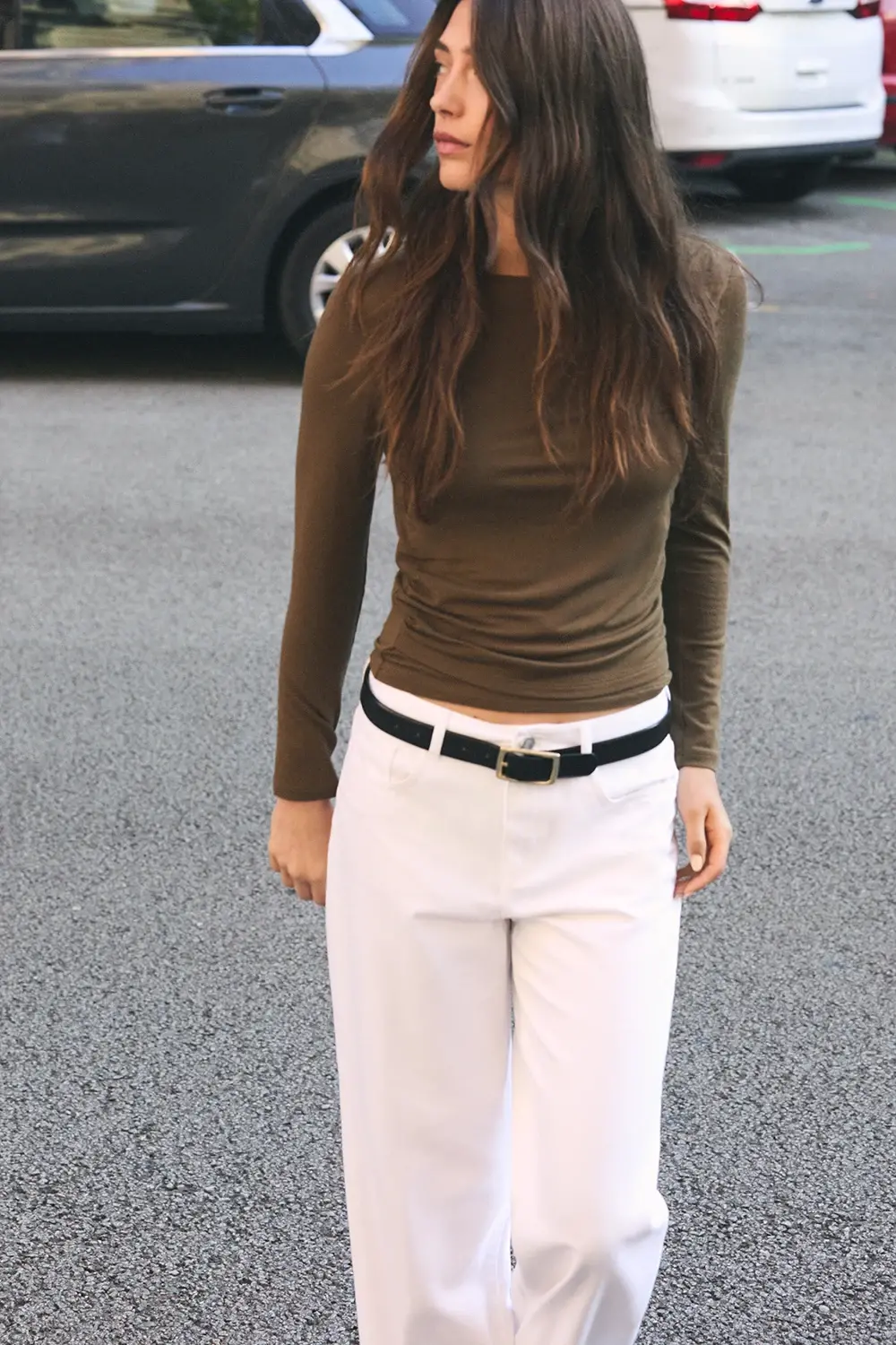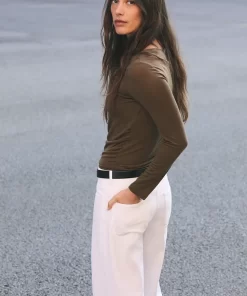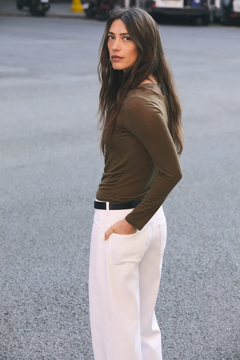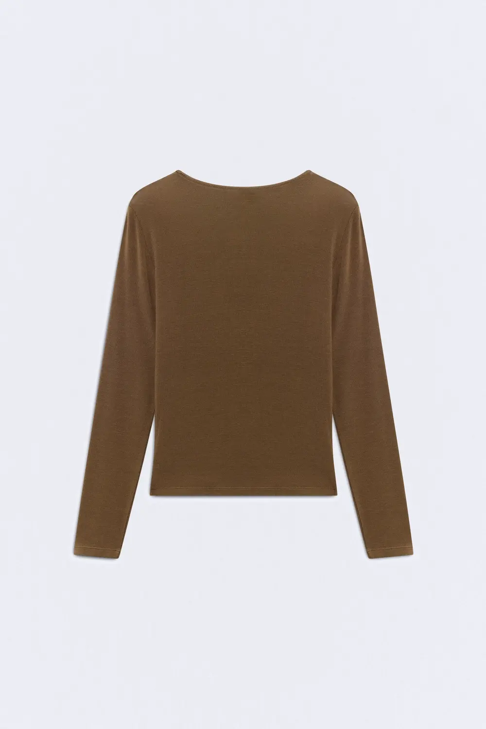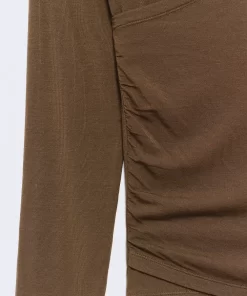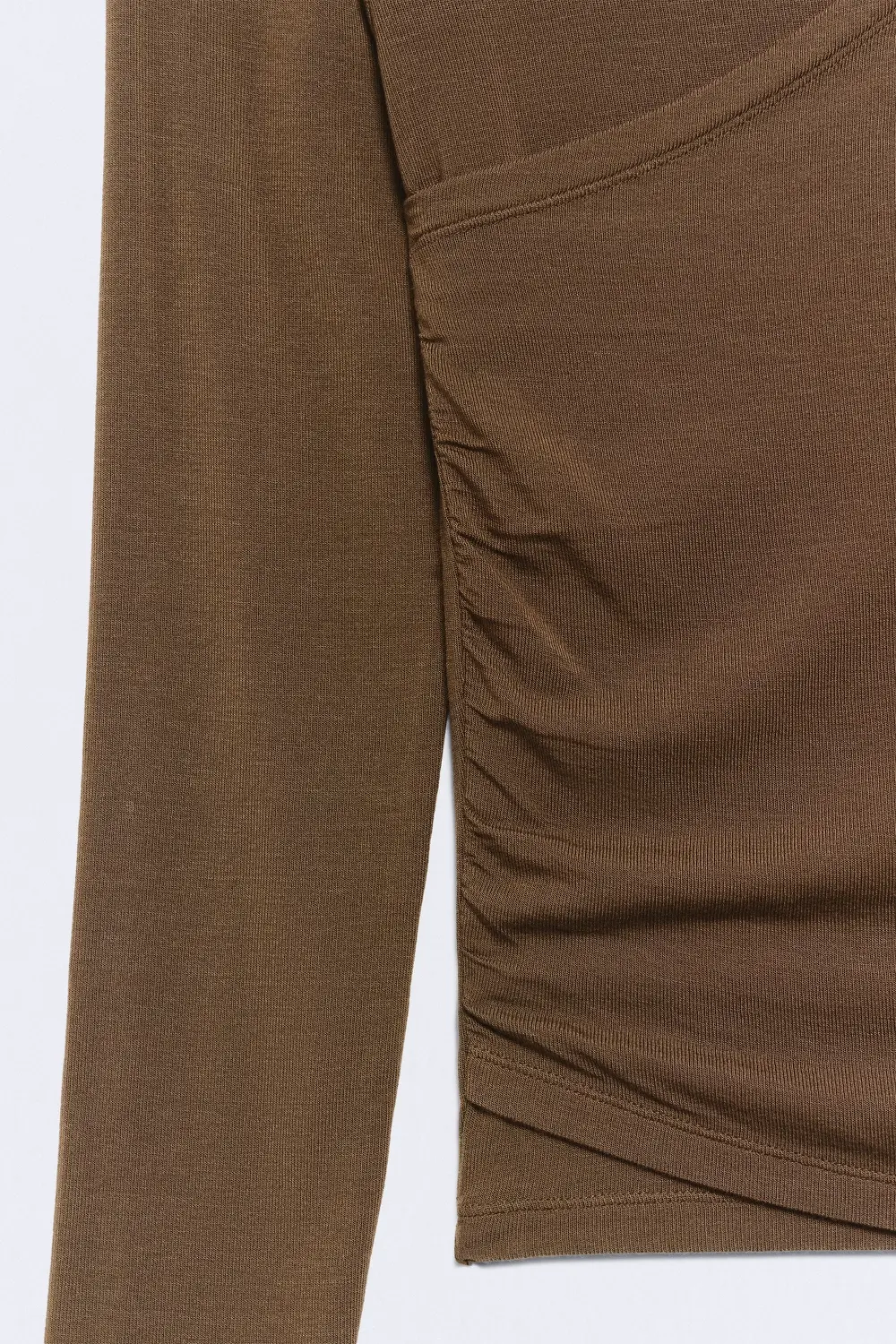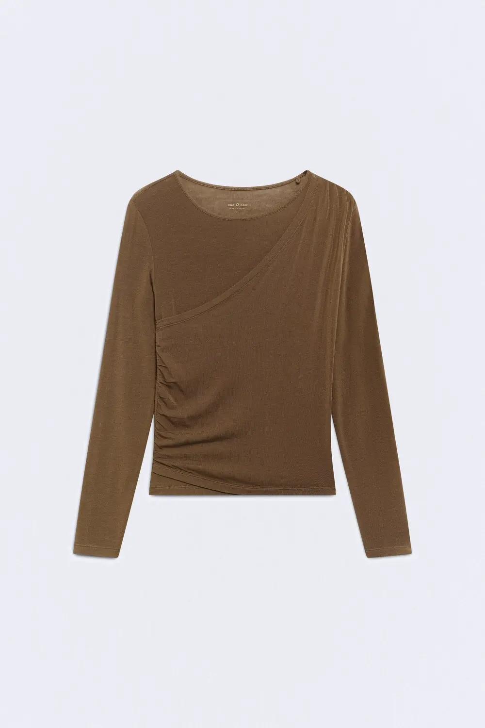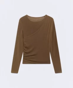 Product descriptionSku:304273-1060 // TS.DAPHNE Long-sleeve T-shirt. Made in Tencel. Asymmetrical double layer. Side ruching details. Very fitted fit. In green color. Garment length for size S: 53 cm.