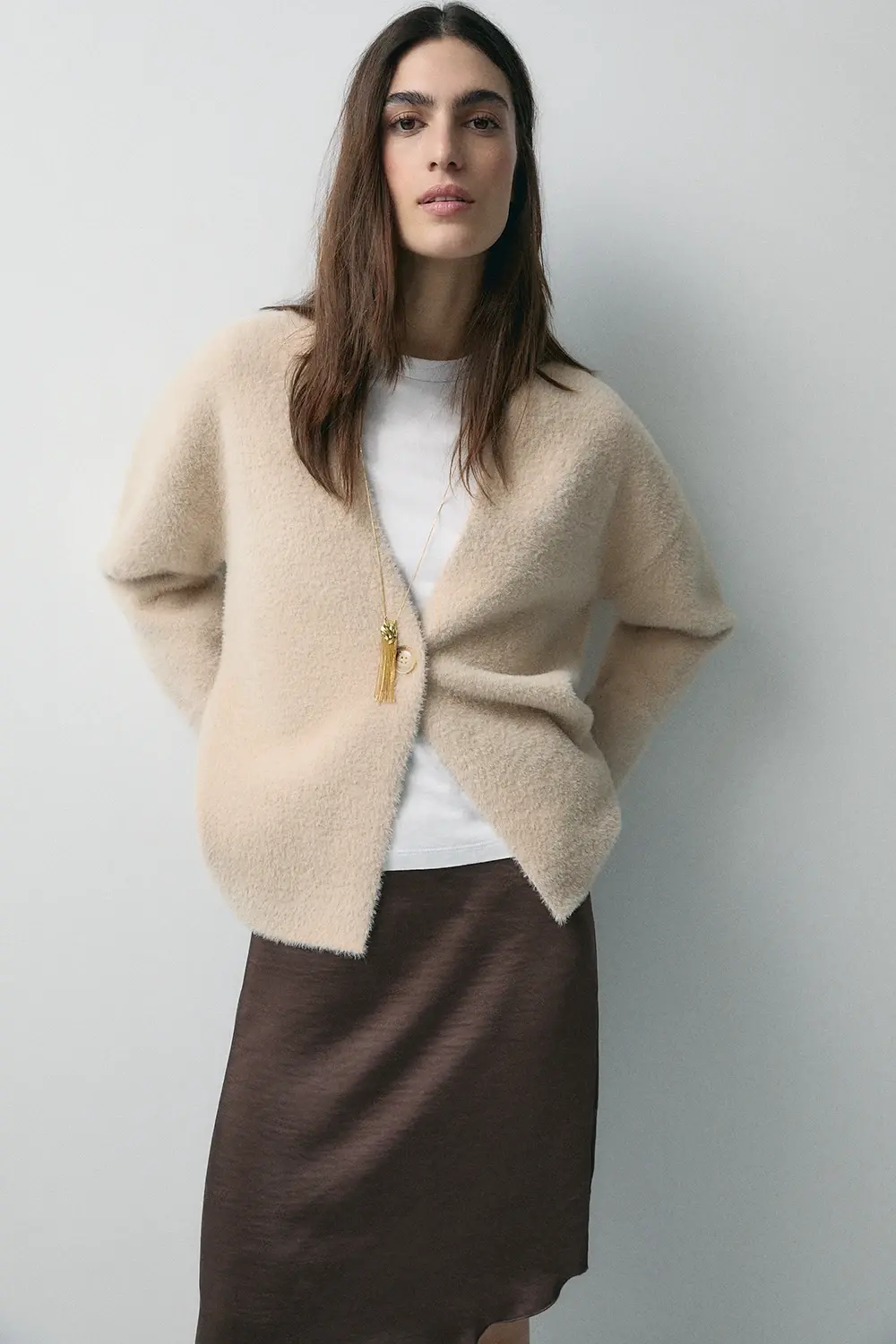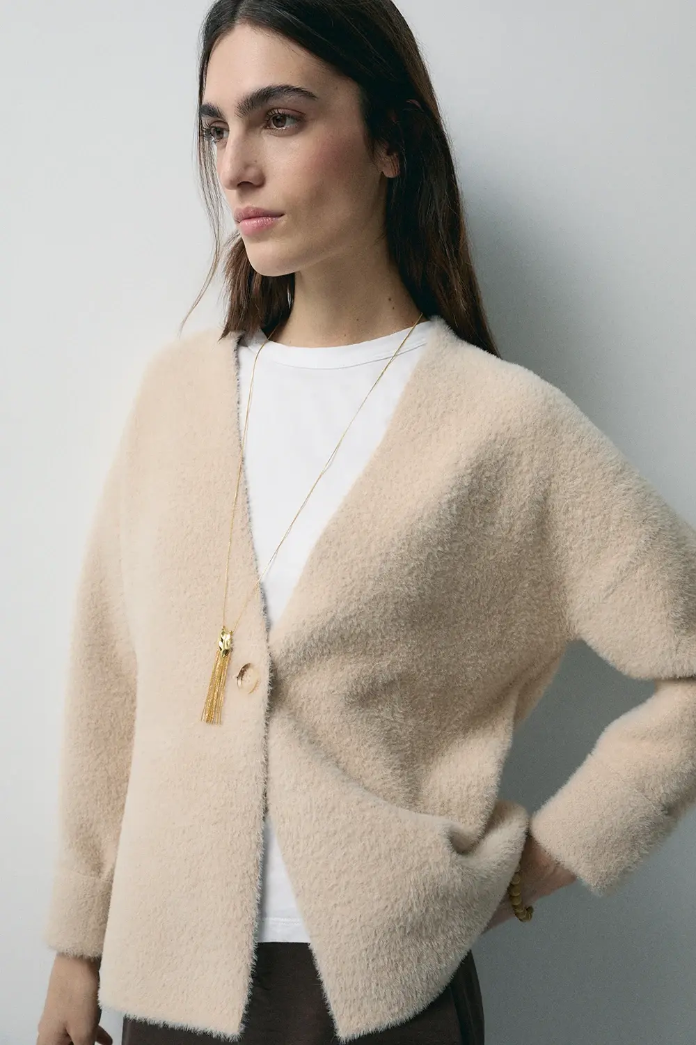 Product descriptionSku:304334-1050 // CH.ALPINE Blazer-effect knit jacket. Blazer-style fitting. Waist tailored. Single central button closure. No lapel. Garment length for size S: 62.5 cm.