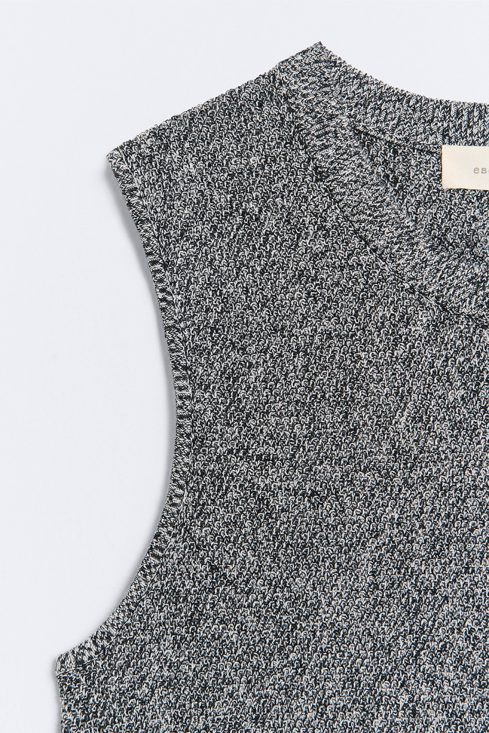 Product descriptionSku:304127-1100 // CHALECO.RICE Two-tone strap vest. Fitted crew neckline. Small clustered stitch seam, rice stitch style. Speckled effect. Hip slit. Stretch fabric. No closure. Garment length for size S: 54.5 cm.