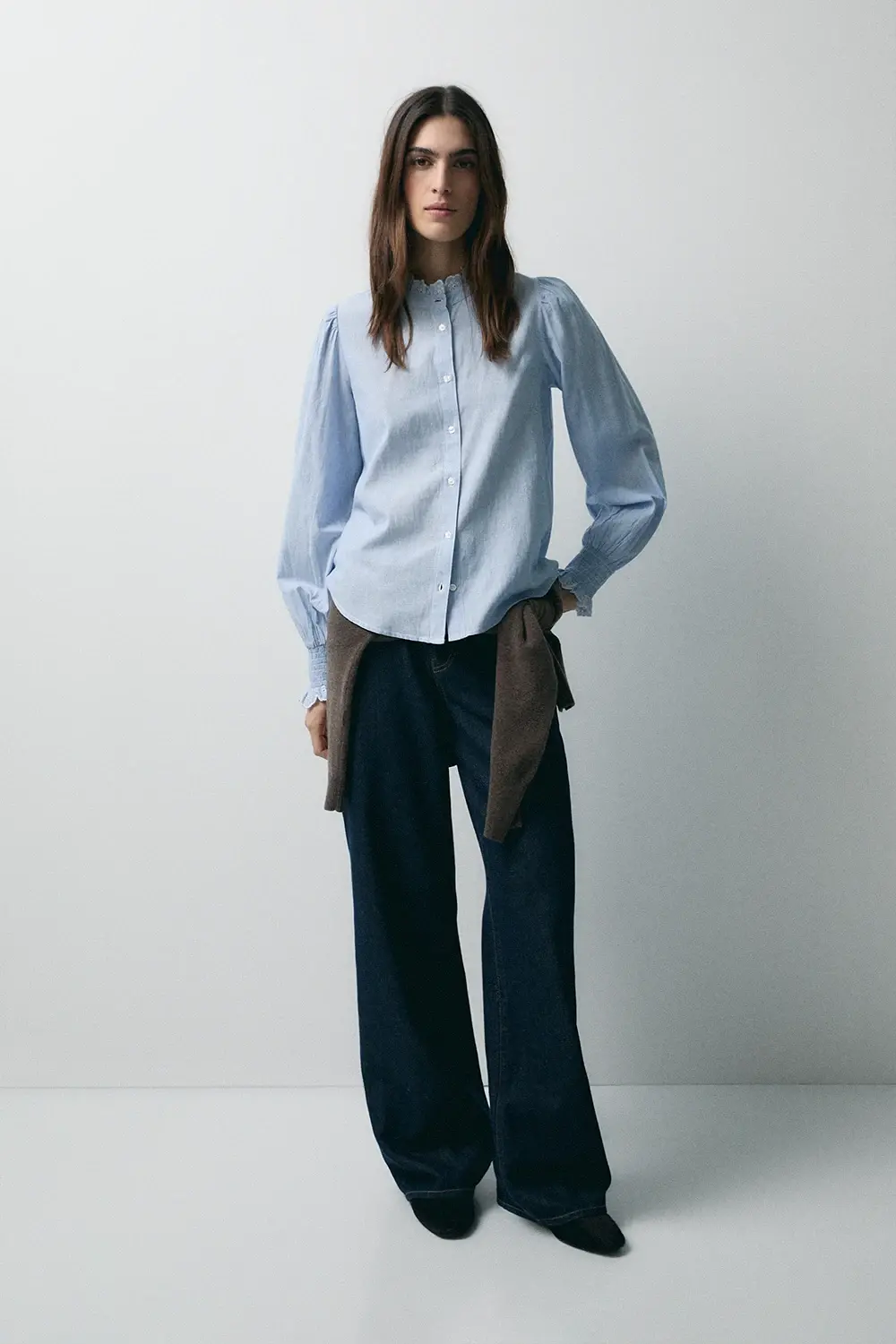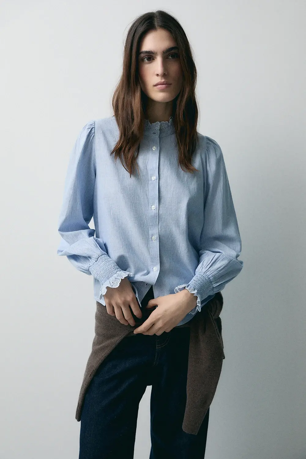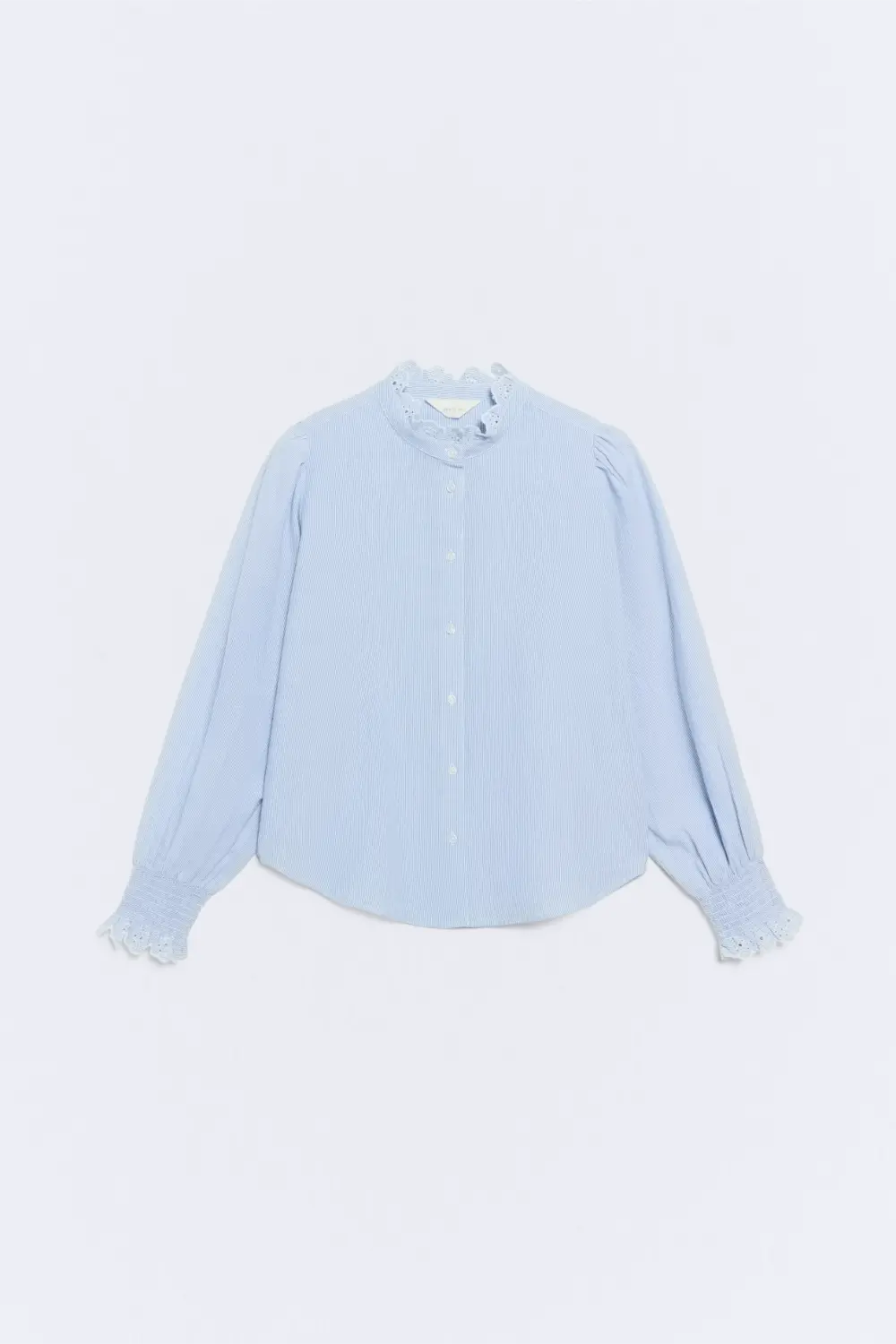 Product descriptionSku:303974-1170 // C.BERTHA 100% BCI cotton shirt. Striped print. Mao collar and English embroidery on collar and cuff. Folded placket and covered central buttons. Garment length for size S: 59.5 cm.