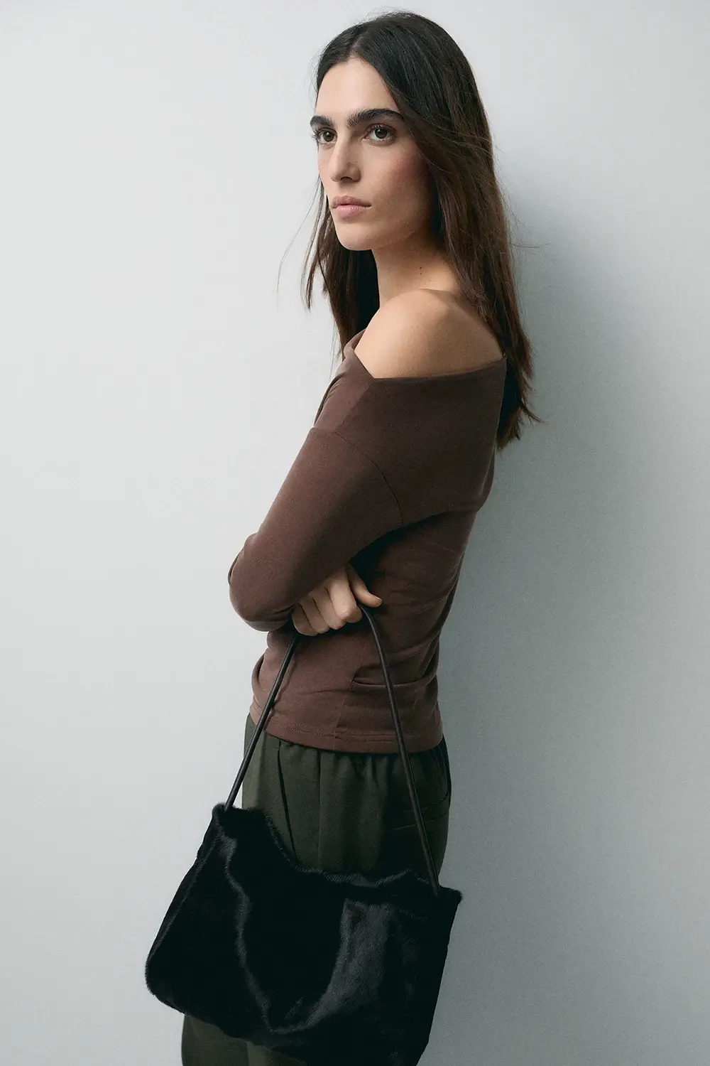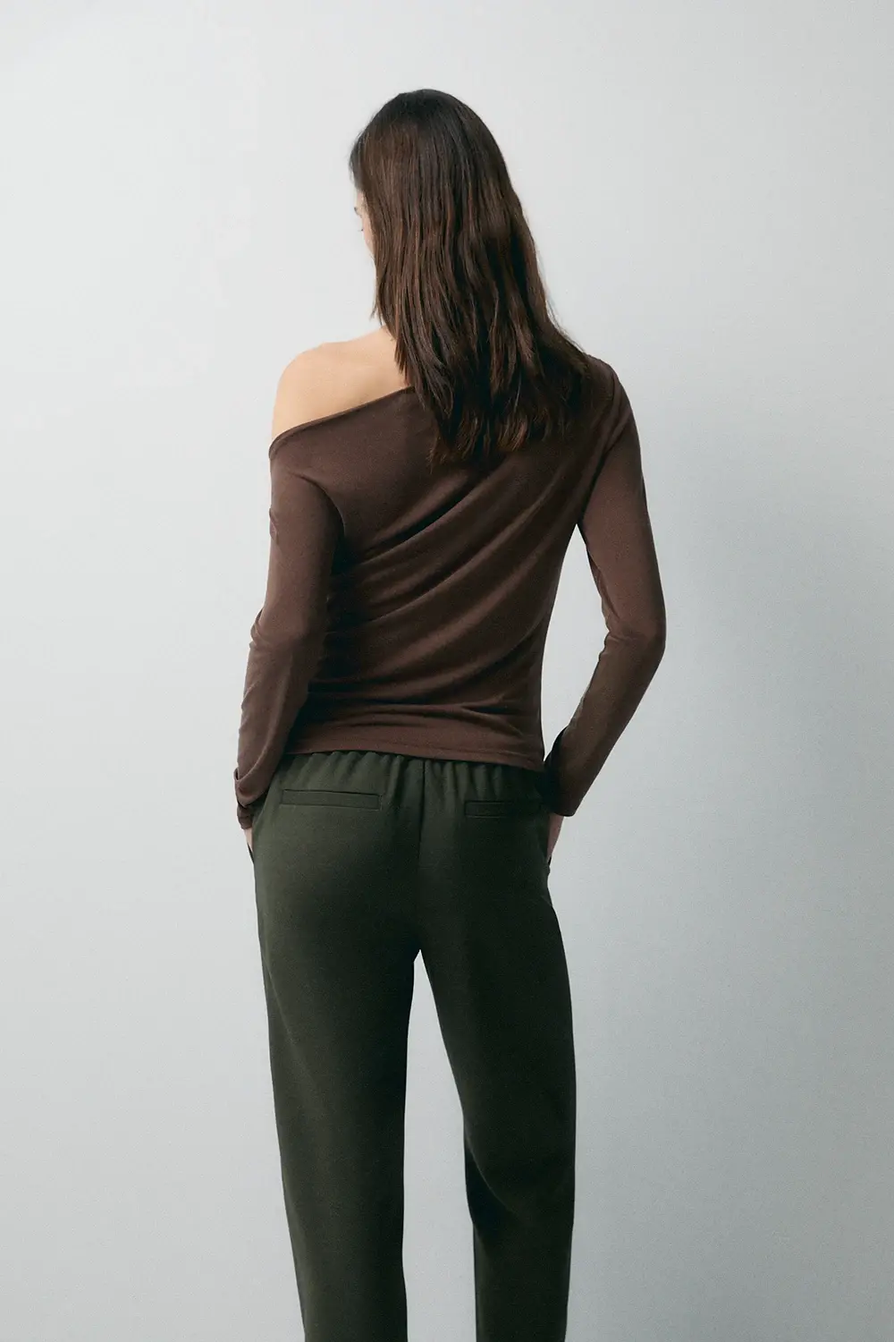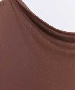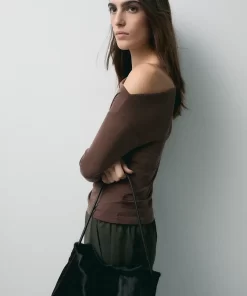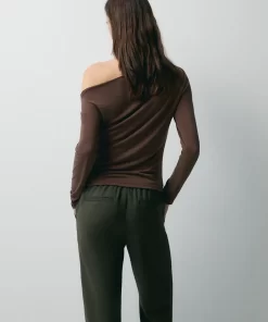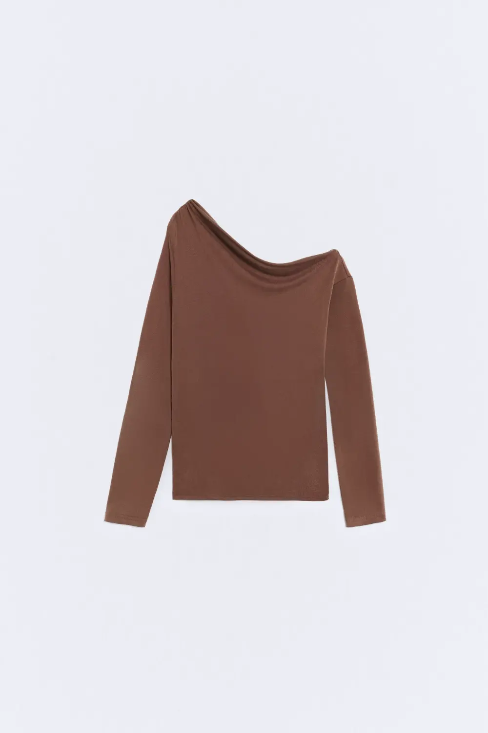 Product descriptionSku:304148-1080 // TS.NICOLE Asymmetric neckline T-shirt. Long sleeves. Cupro-like fabric quality. Fitted fit. Garment length for size S: 54 cm.