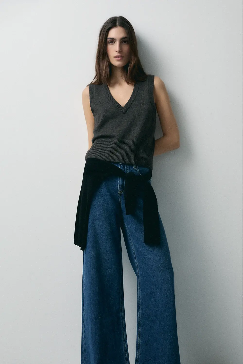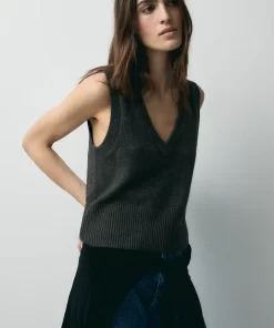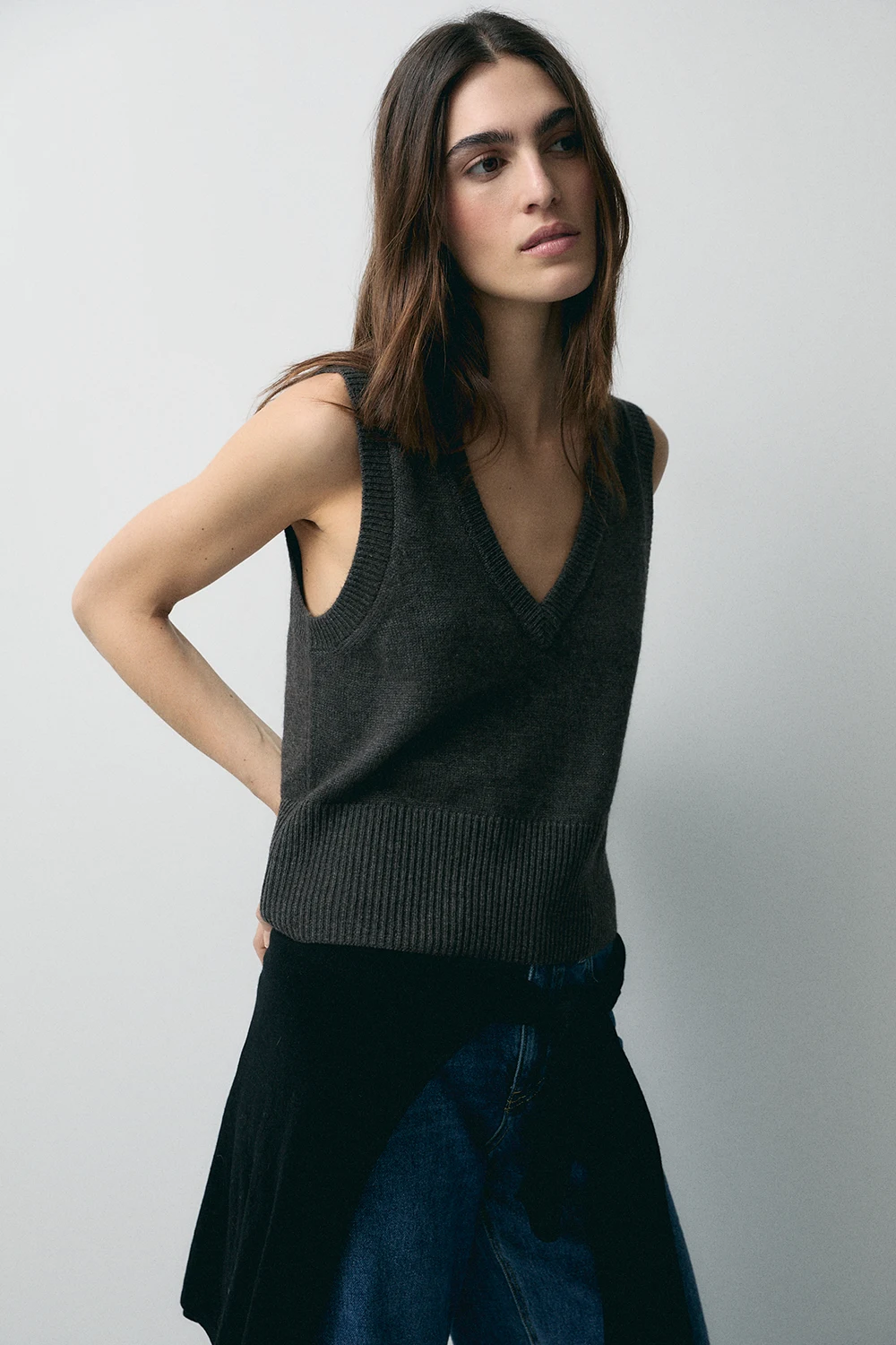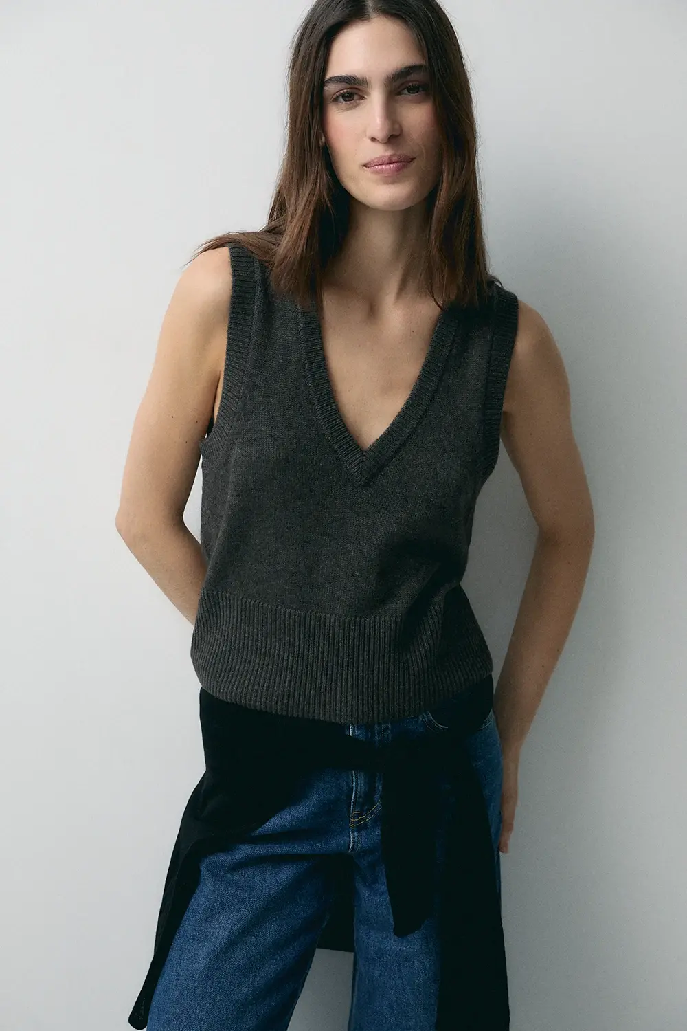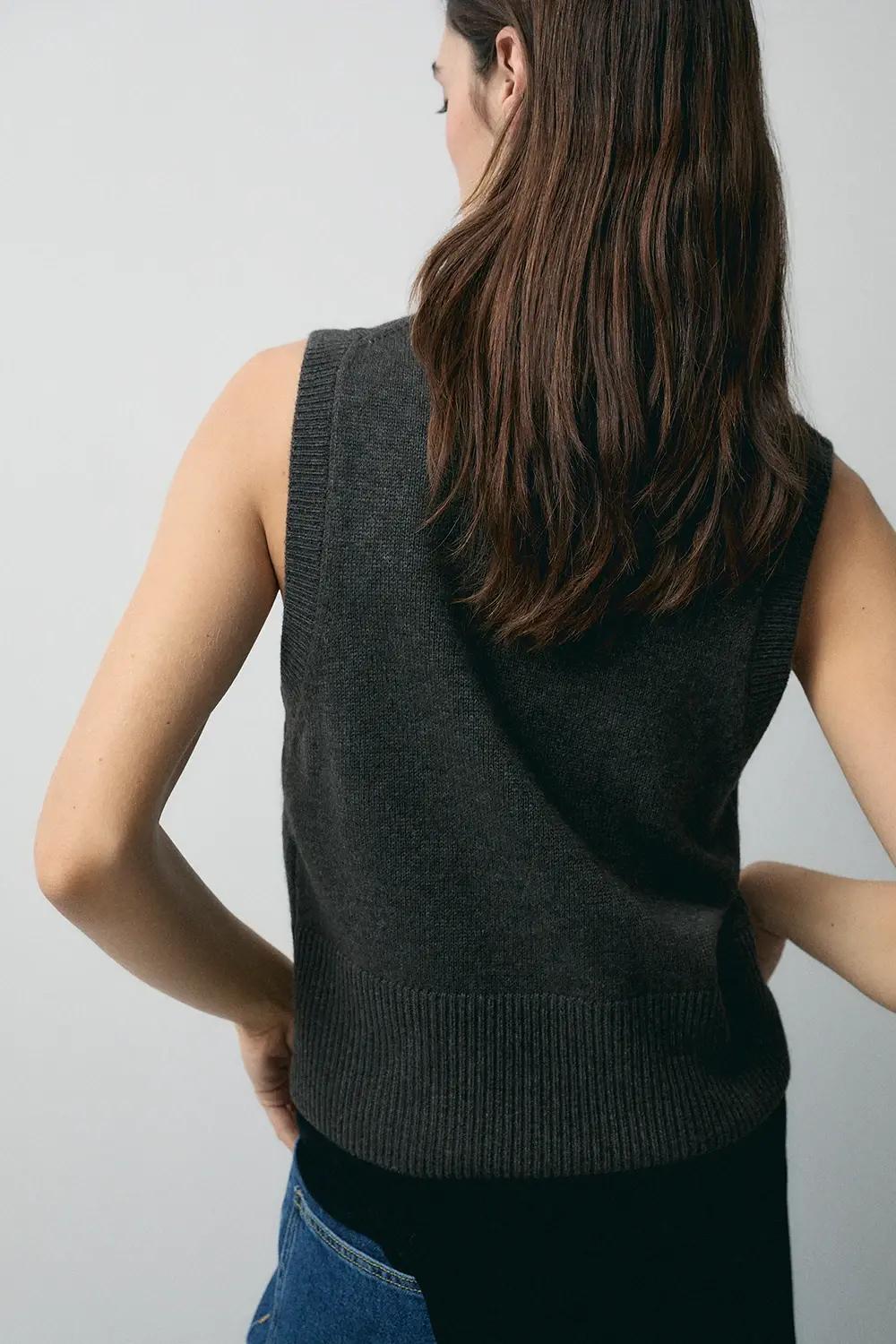 Product descriptionSku:303987-1080 // CHALECO.CAMBRIDGE Cropped sleeveless vest. V-neckline. Made of wool and yak. Garment length for size S: 51.5 cm.