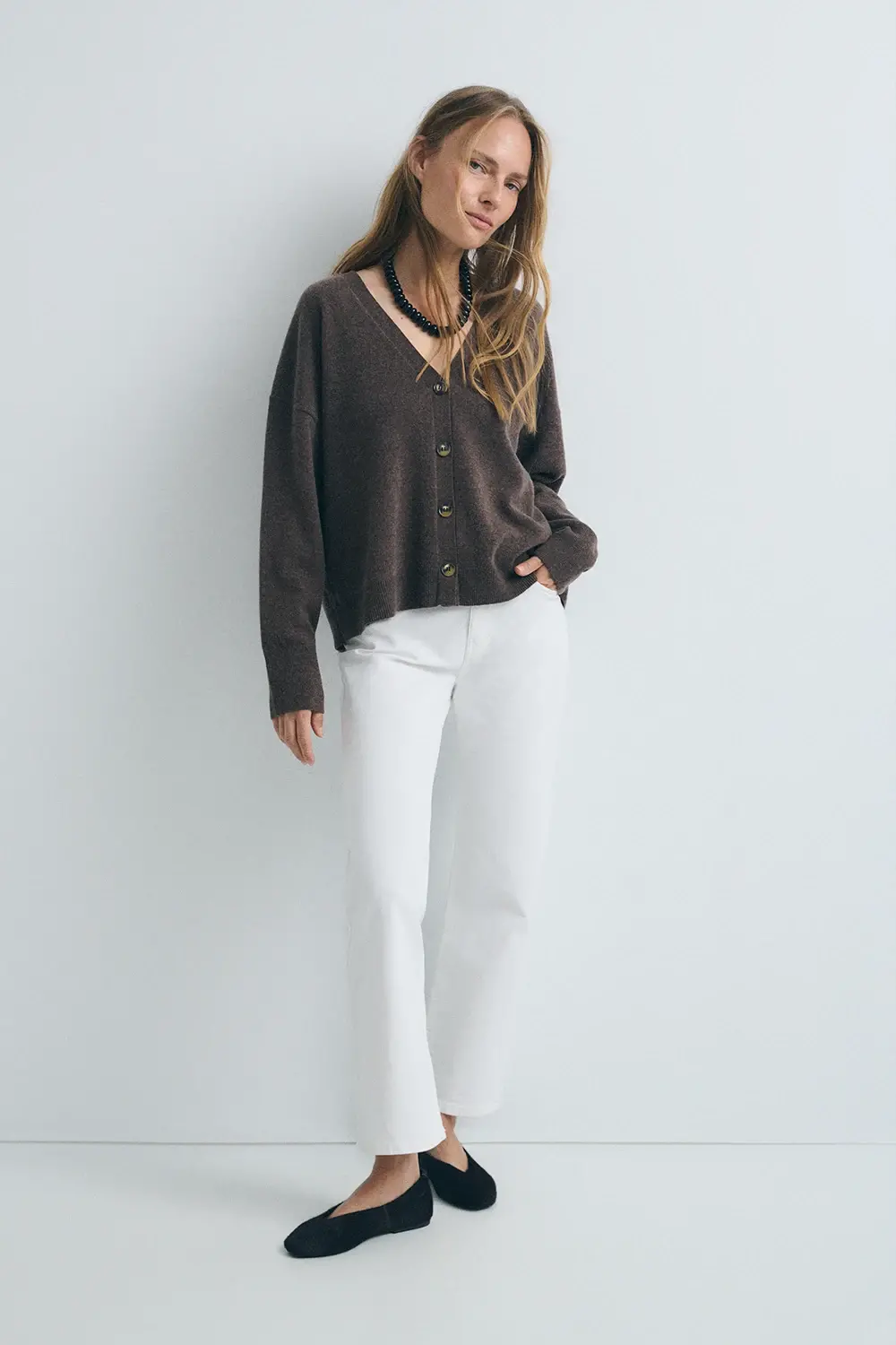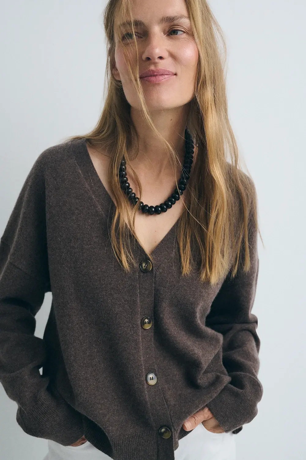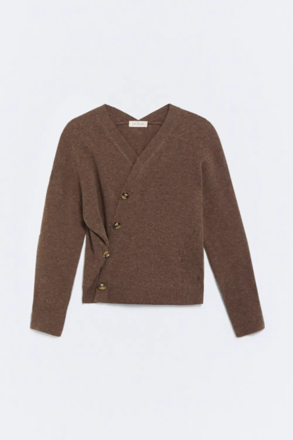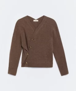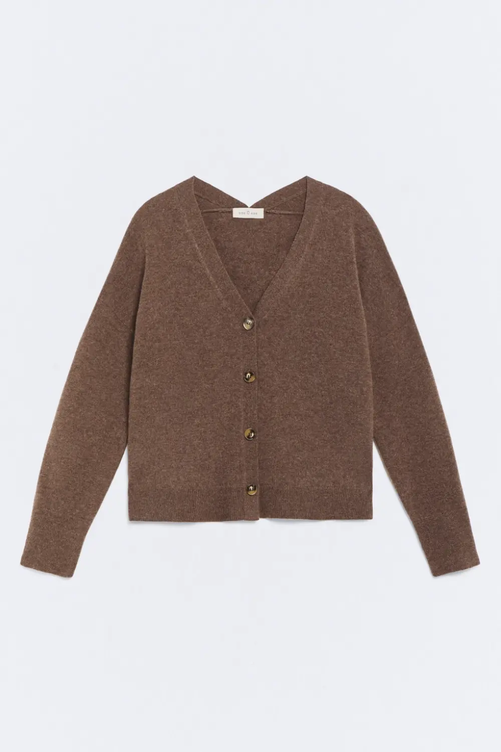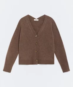 Product descriptionSku:304053-1080 // J.NAMUR Fine-gauge knit cardigan (gauge 12). Brown color. V-neckline. Wool and cashmere blend fabric. Garment length for size S: 56 cm.