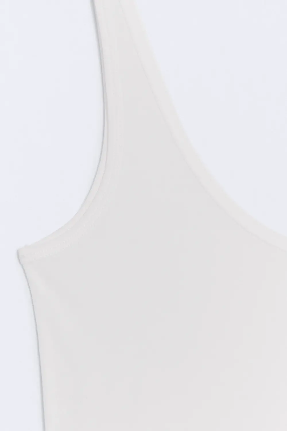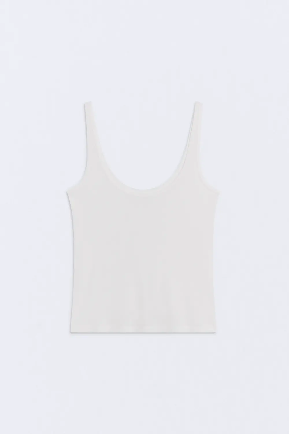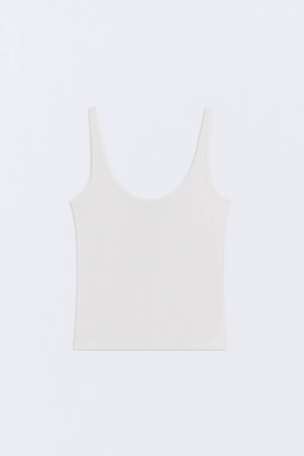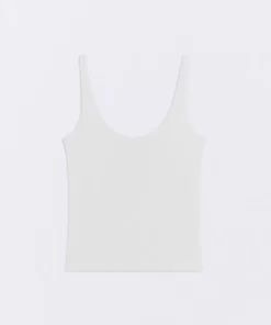 Product descriptionSku:304356-1010 // TANK.NUDE Thin-strapped top. 100% cotton crepe-textured fabric. Funnel neck. In off-white. Garment length for size S: 51,5 cm.