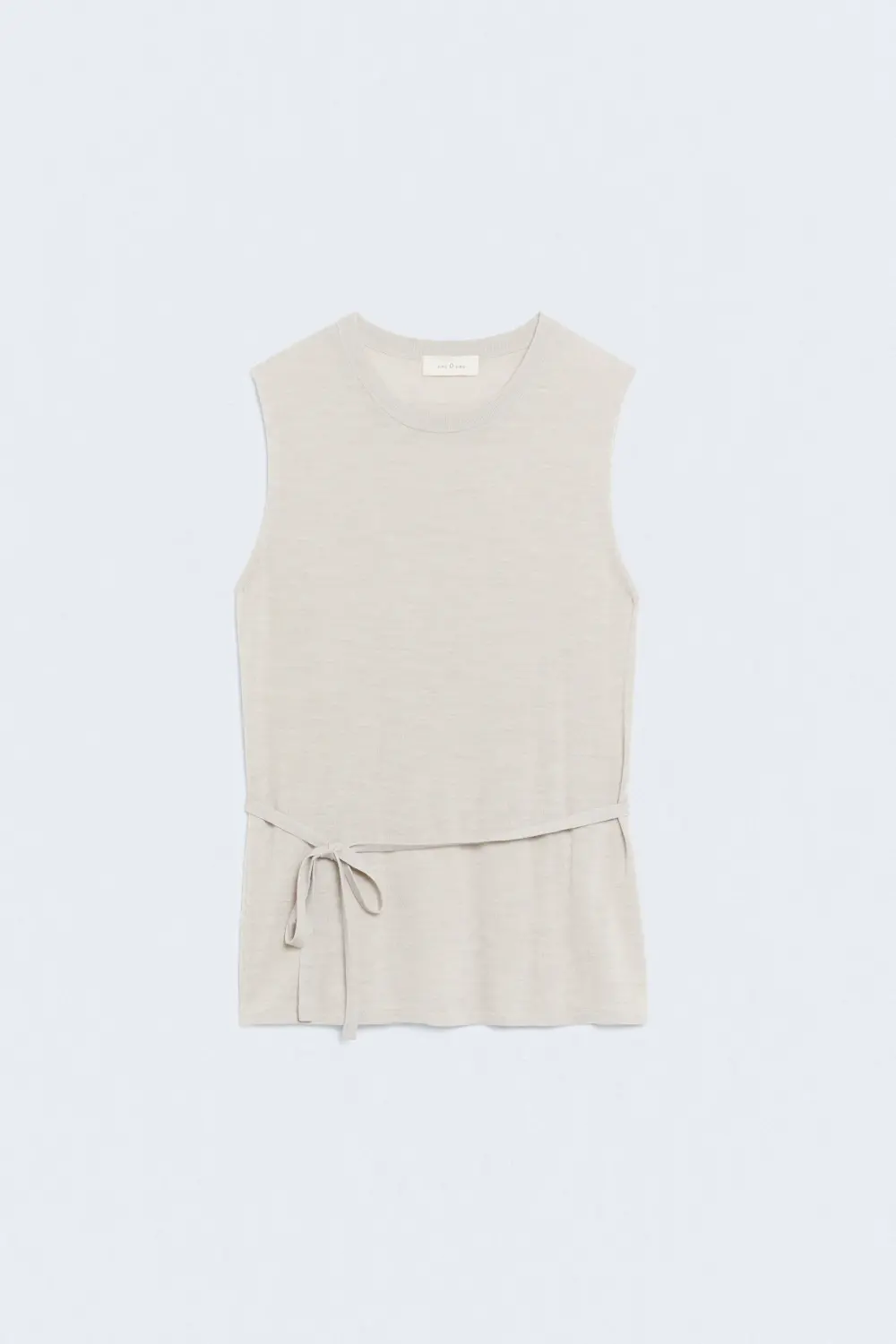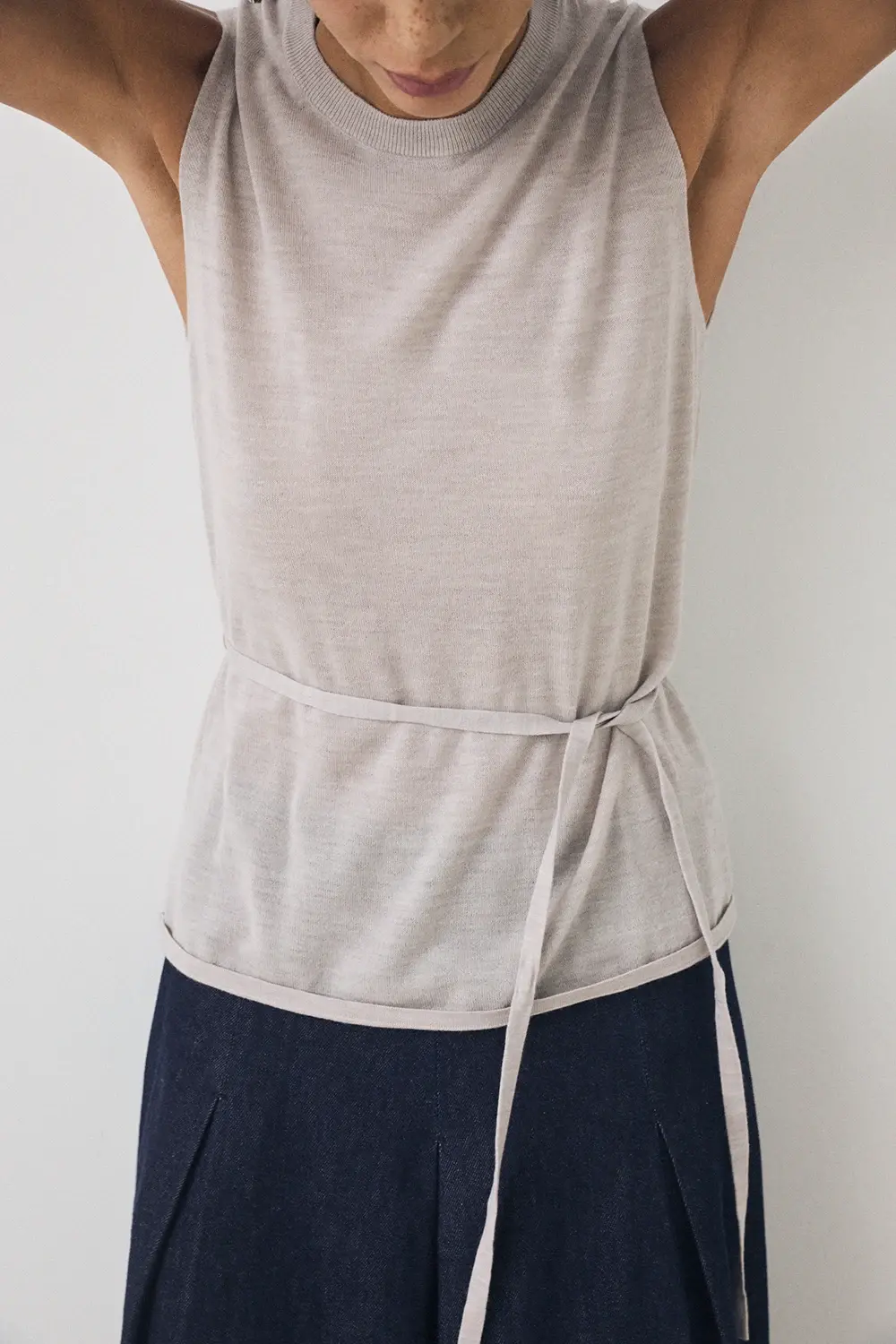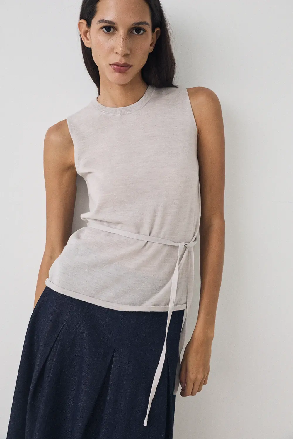 Product descriptionSku:304216-1080 // TOP.SETTER Wool fine-gauge knit top. Ribbed crew neckline. Thin belt detail in matching knit. Slightly sheer fabric. Garment length for size S: 60 cm