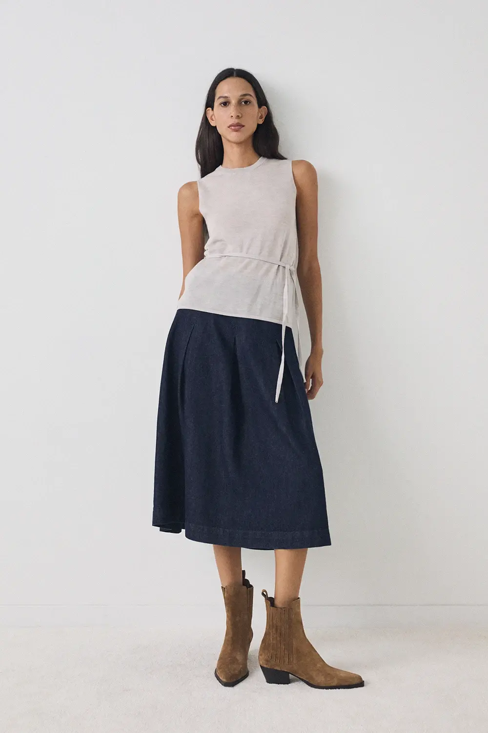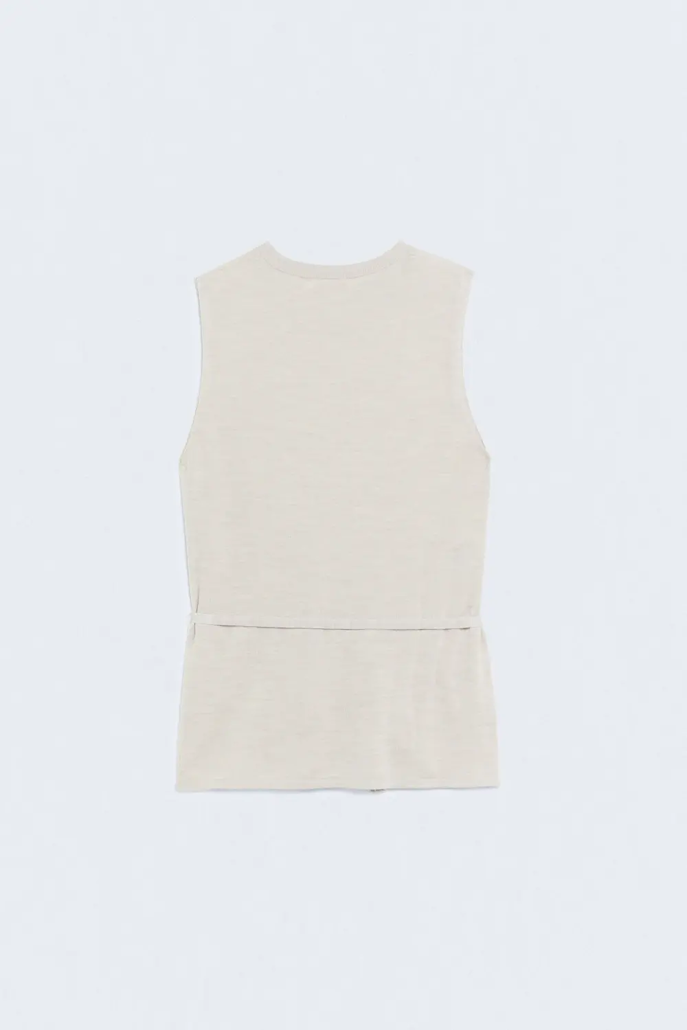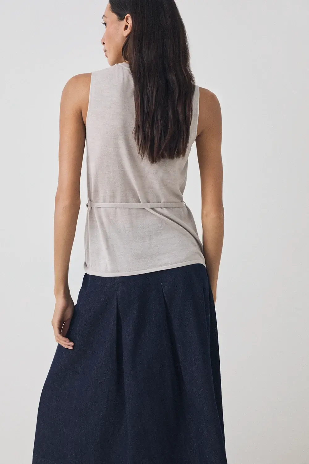 Product descriptionSku:304216-1080 // TOP.SETTER Wool fine-gauge knit top. Ribbed crew neckline. Thin belt detail in matching knit. Slightly sheer fabric. Garment length for size S: 60 cm