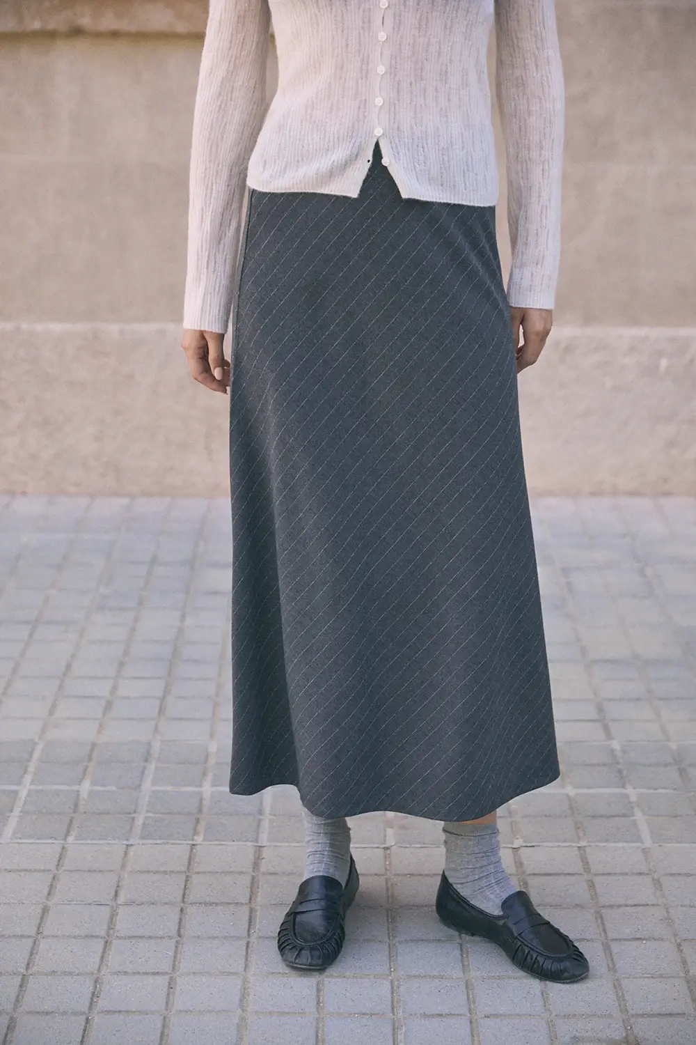 Product descriptionSku:304261-1090 // F.DIPLOMATIC Flared skirt in bias-cut pinstripe fabric. Lined interior. With elastic waistband. Garment length for size S: 90 cm.
