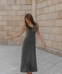 Product descriptionSku:304302-1060 // V.MANHATTAN Long fluid strap dress. Shoulder pleat detail. Round neckline. Cupro-like fabric quality. Garment length for size S: 128 cm.