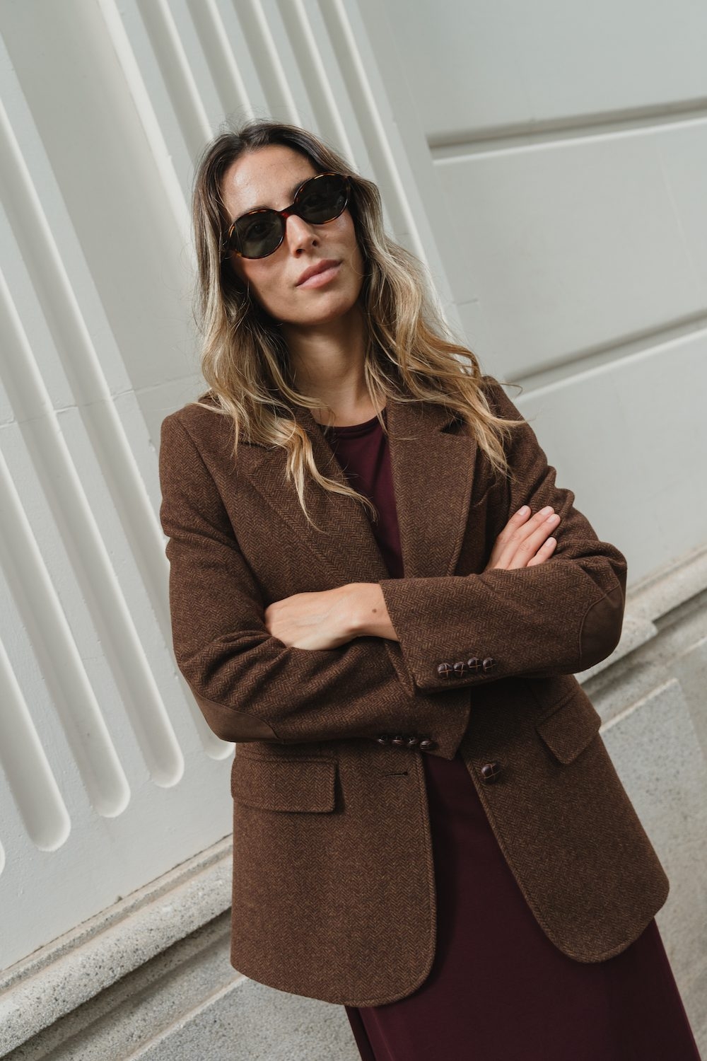 – Tone-on-tone elbow patch detail.