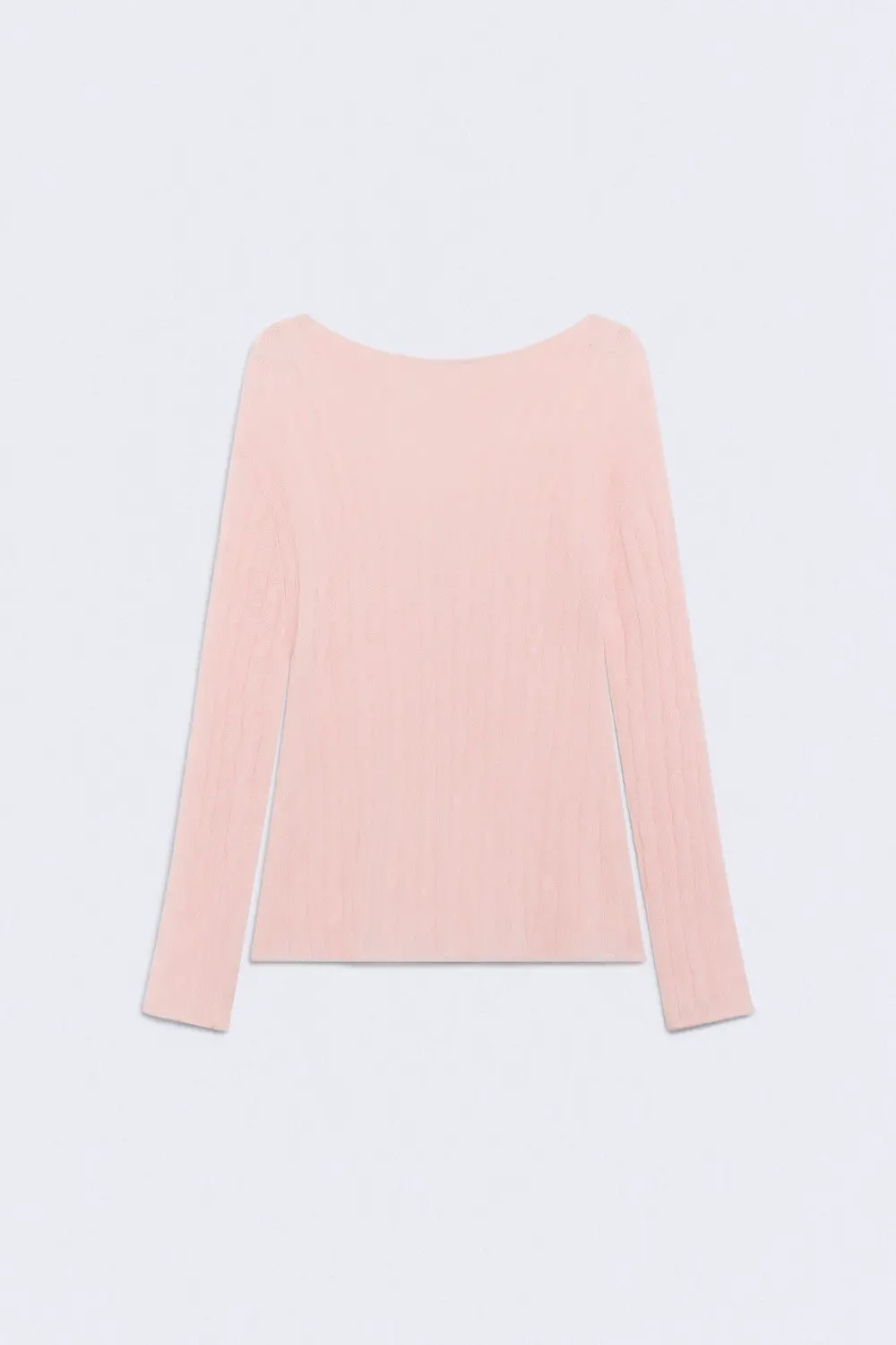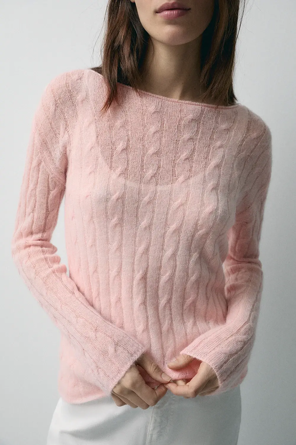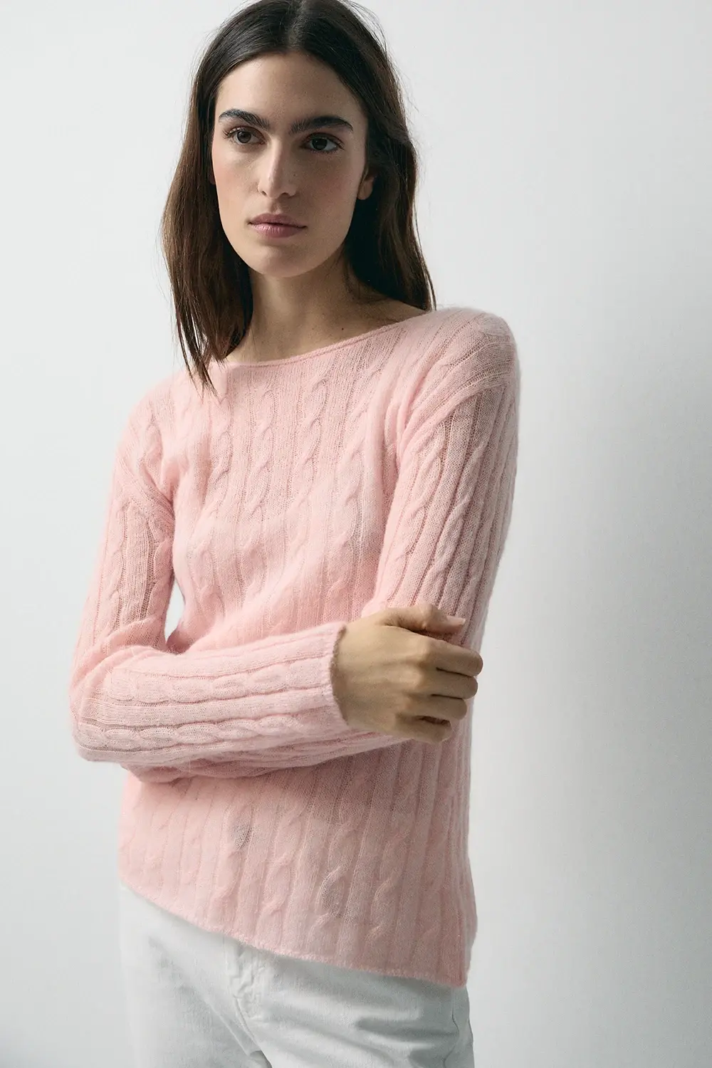 Product descriptionSku:304344-1030 // J.MARCH Medium-gauge sweater. Textured, slightly transparent fabric. Boat neck. Ribbed finish on cuffs and hem. In petal pink. Garment length for size S: 60 cm.