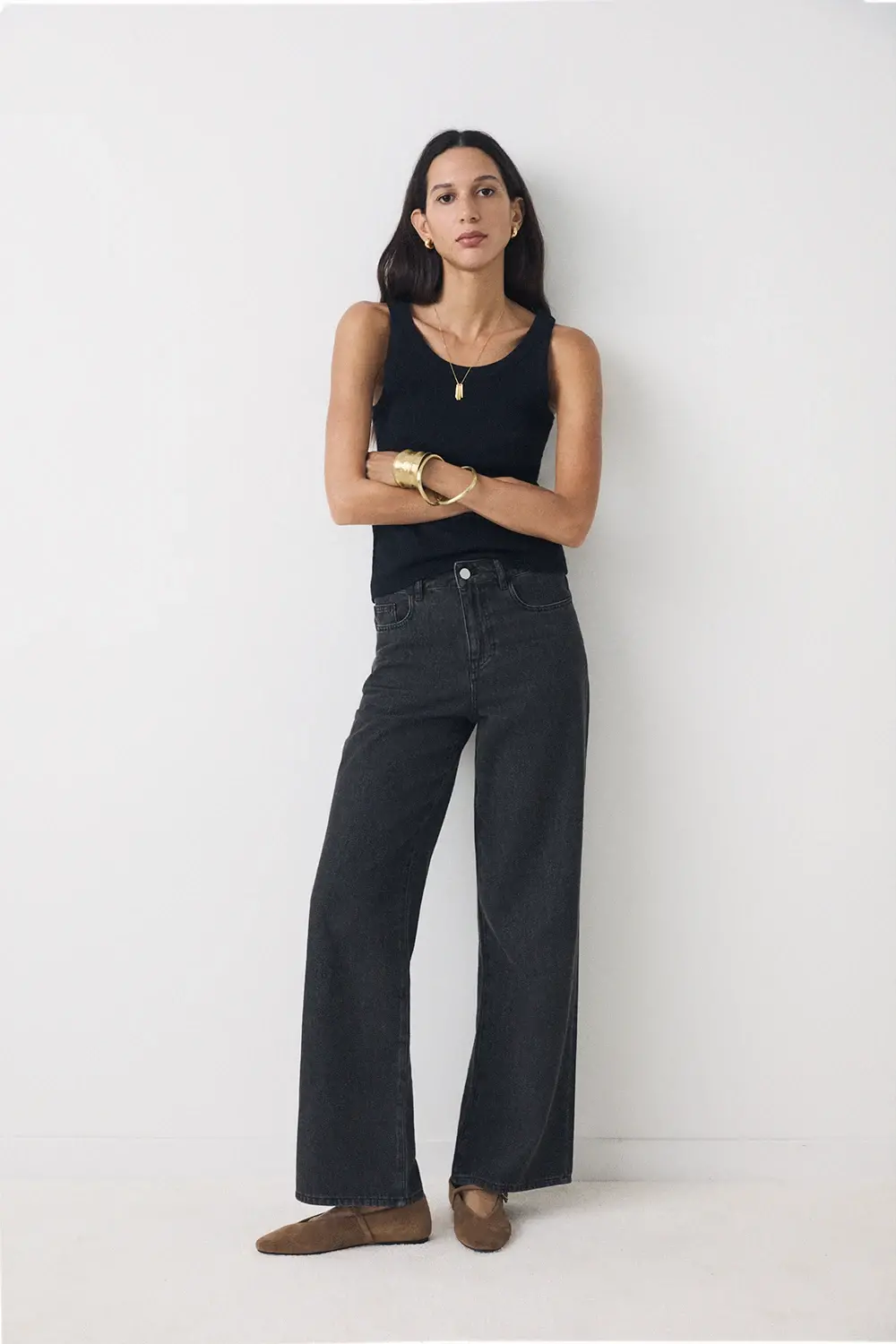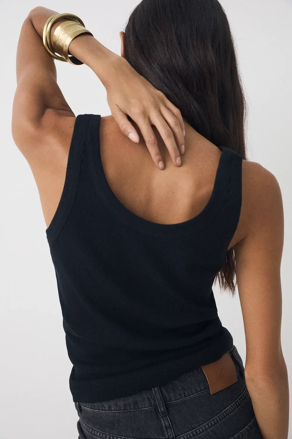 Product descriptionSku:304323-1100 // TANK.C.COLA Basic ribbed tank top in black. Made in Portugal. Organic cotton fabric. Wide straps. Round neckline. Slightly fitted. Garment length for size S: 56 cm.