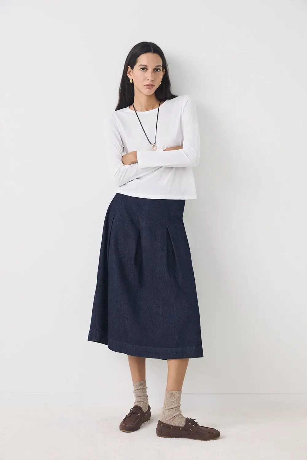 Product descriptionSku:303961-1070 // F.PHOENIX MIDI Pleated denim midi skirt. Unlined. Flared fit. Side zip closure. Style tip: size up for a low-rise fit. May transfer color onto light surfaces. Garment length for size S: 78 cm.