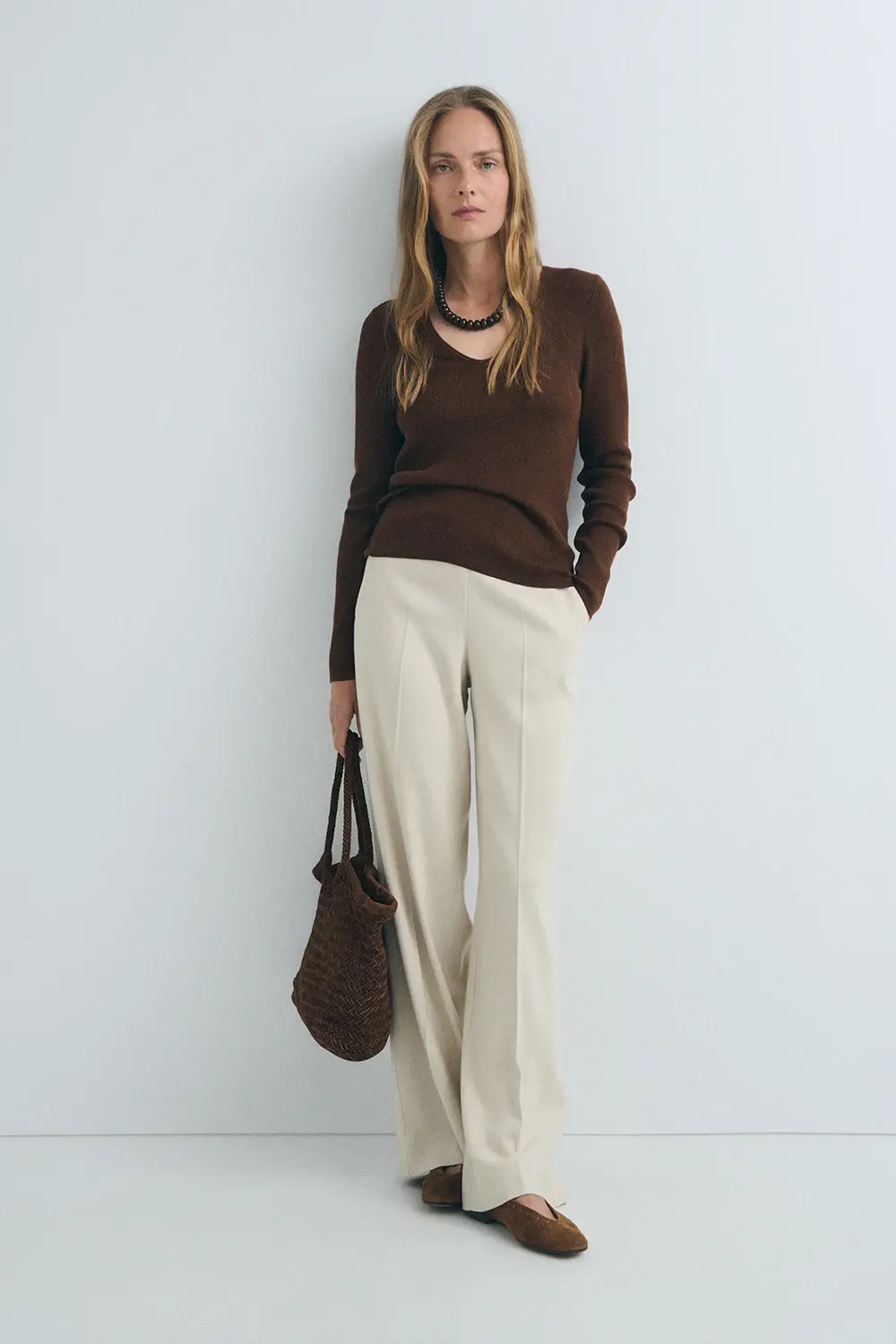 Product descriptionSku:304020-1080 // TS.TRENDY 100% fine-knit wool sweater. Ribbed structure. Deep round neckline. Fitted. Stretch fabric. Garment length for size S: 57 cm.
