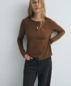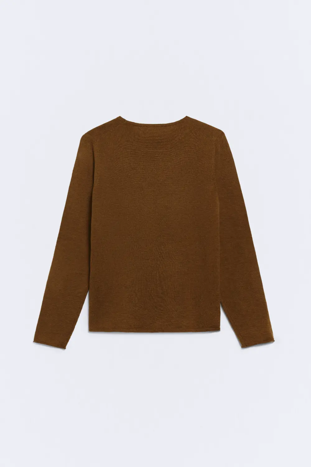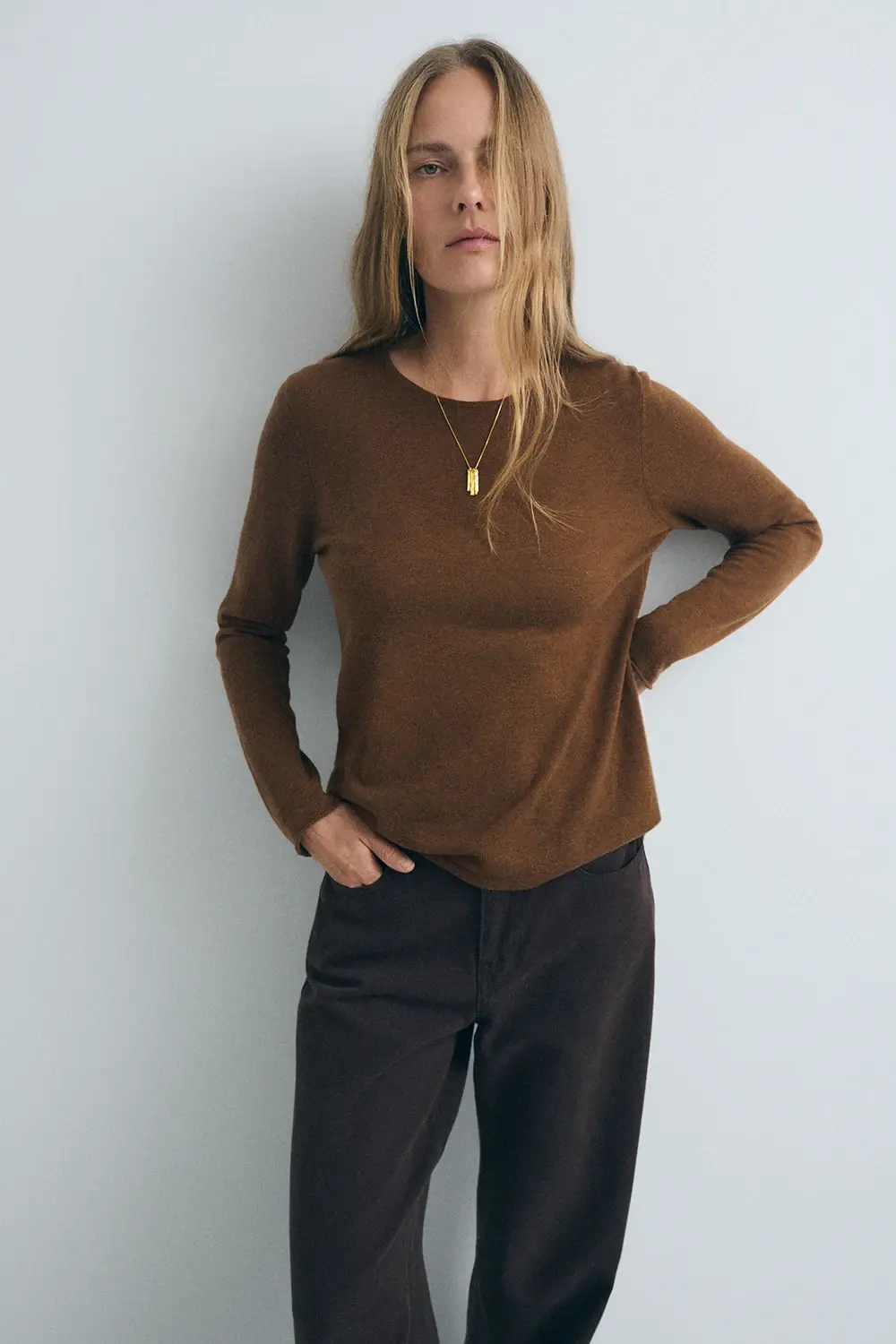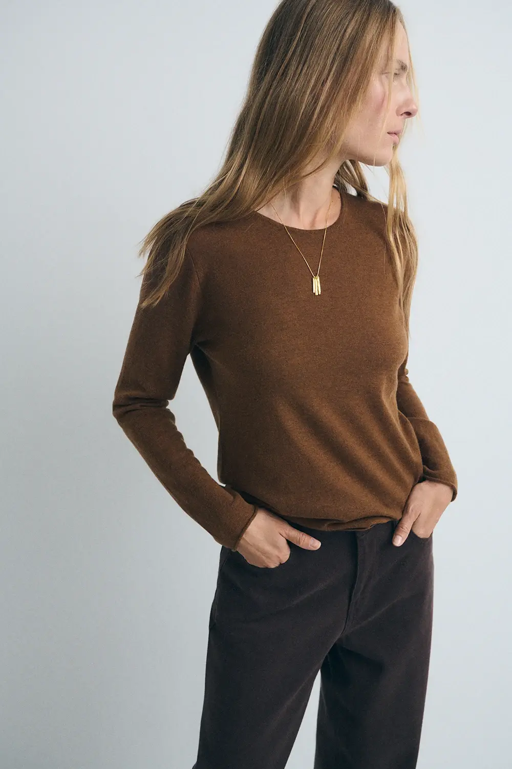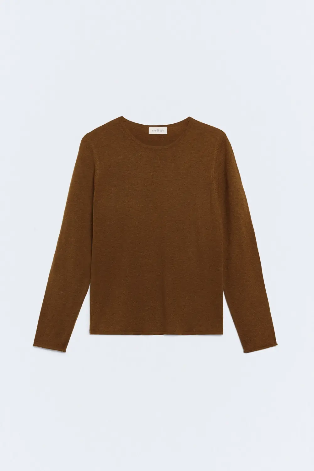 Product descriptionSku:303852-1080 // J.ADAM Basic fine-knit sweater. In caramel color. Crew neck. Long sleeves. Straight fitting. Semi-sheer wool and cashmere fabric. Garment length for size S: 58.5 cm.