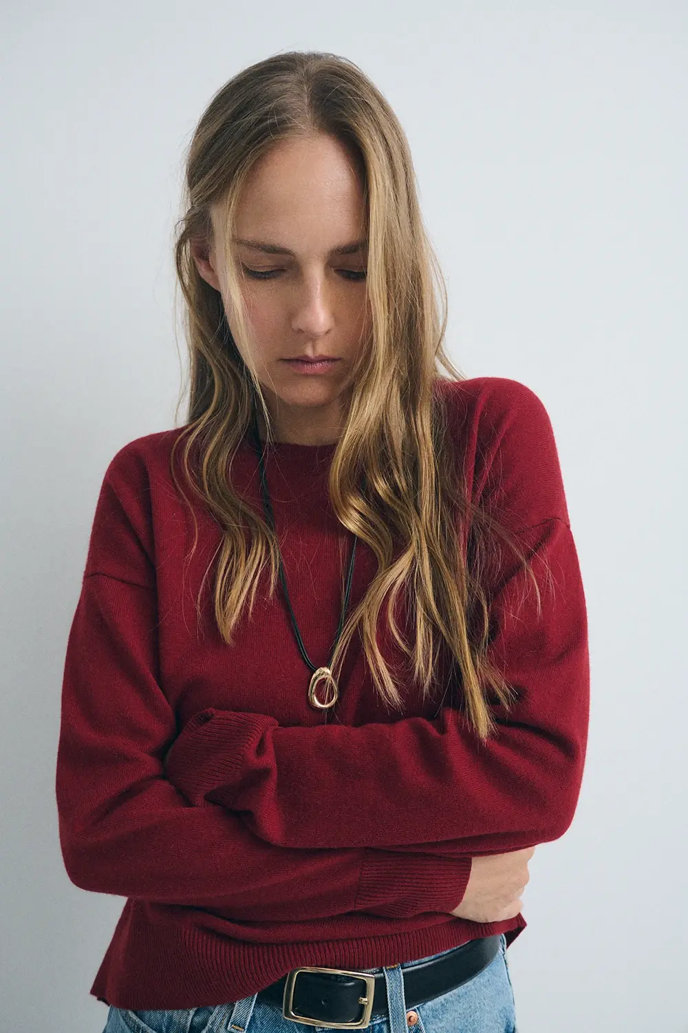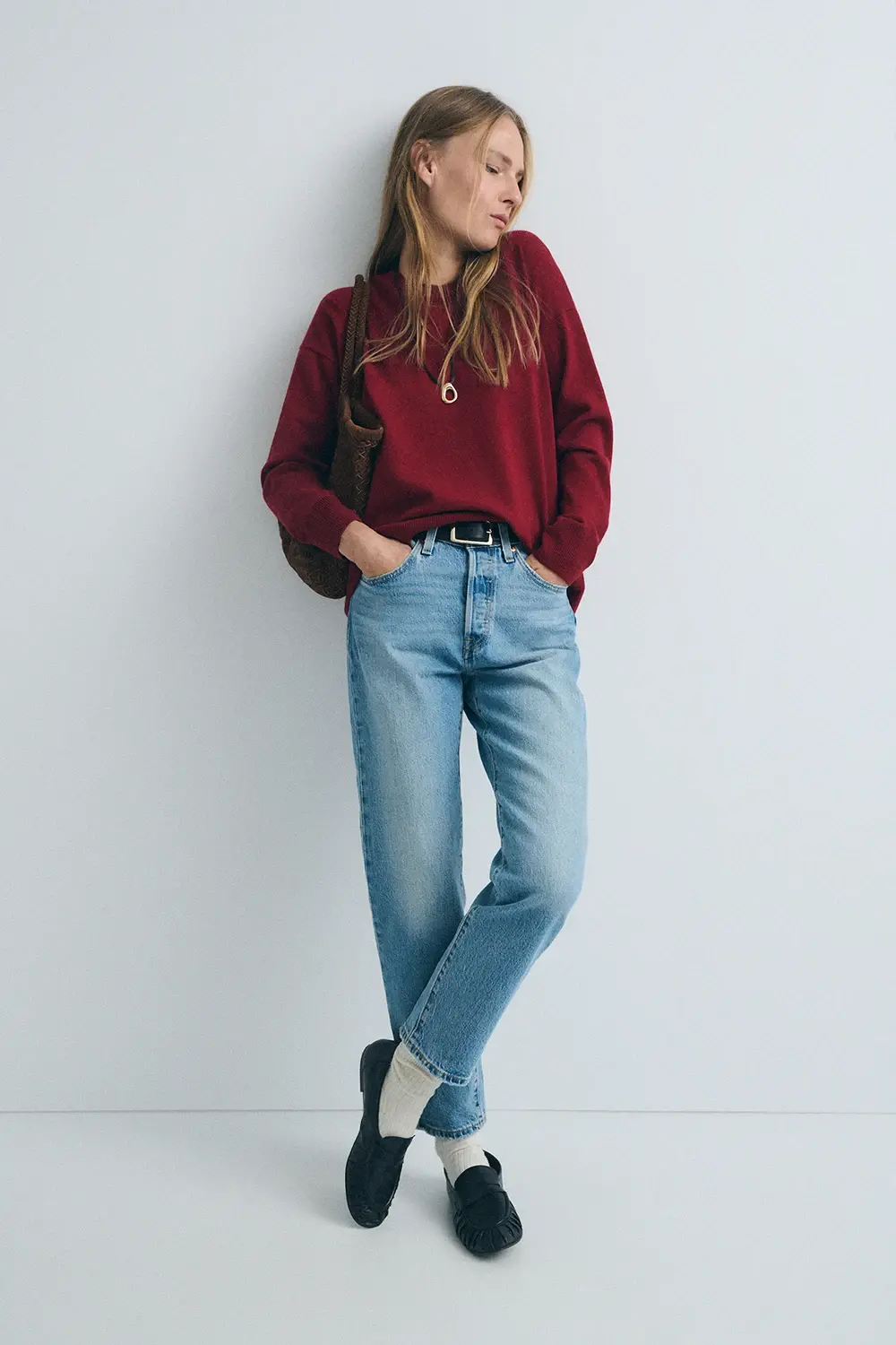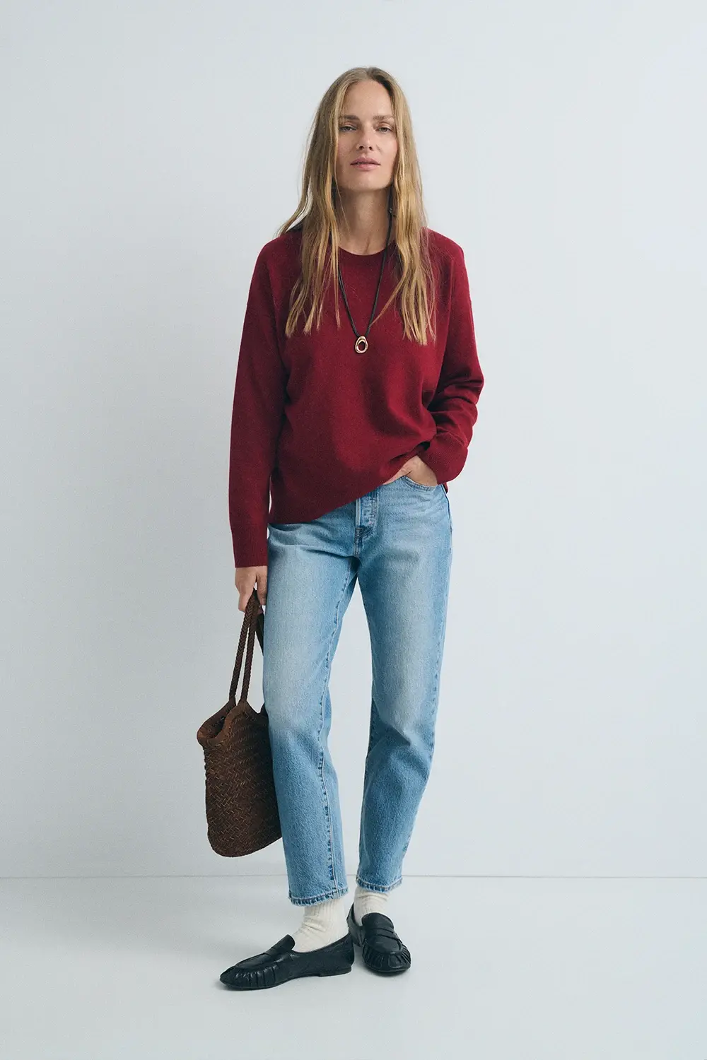 Product descriptionSku:303851-1140 // CARDI.COCOON Basic medium-gauge knit sweater (gauge 7). Crew neck. Long sleeves. Wool and cotton blend fabric. Loose fit. Embroidered logo detail. Garment length in size S: 59.5 cm.