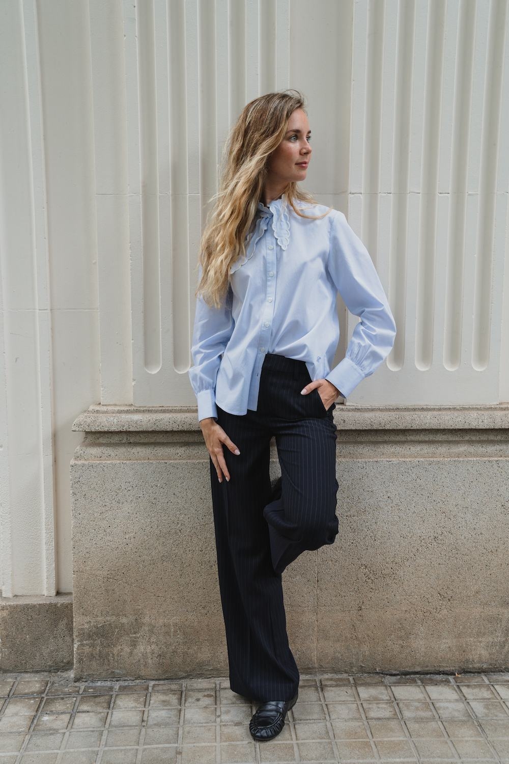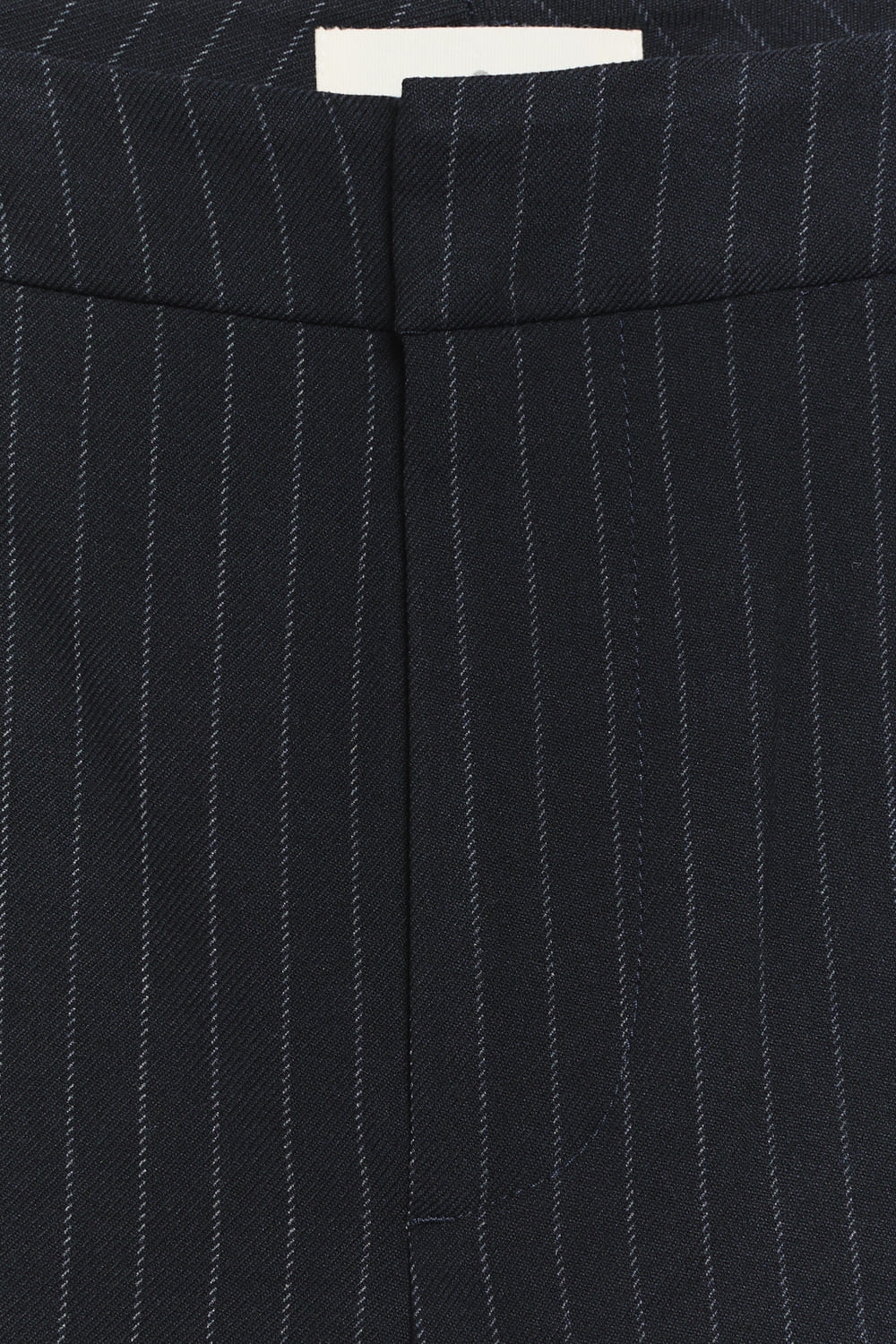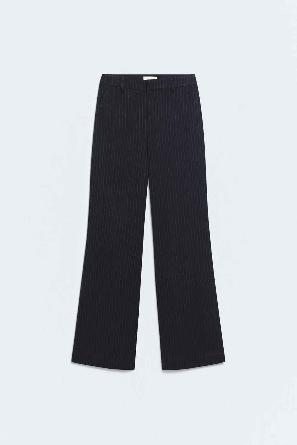 Product descriptionSku:304087-1170 // PANT.CHICAGO Long tailored trousers with pinstripe. Made of recycled polyester fabric. Mid-rise with belt loops. Side pockets. Metal hook and zipper closure. Crease detail. Flare fitting. Matching blazer. Garment length for size S: 106 cm.