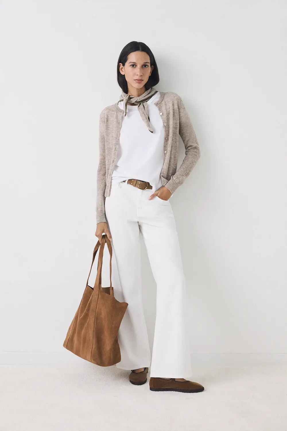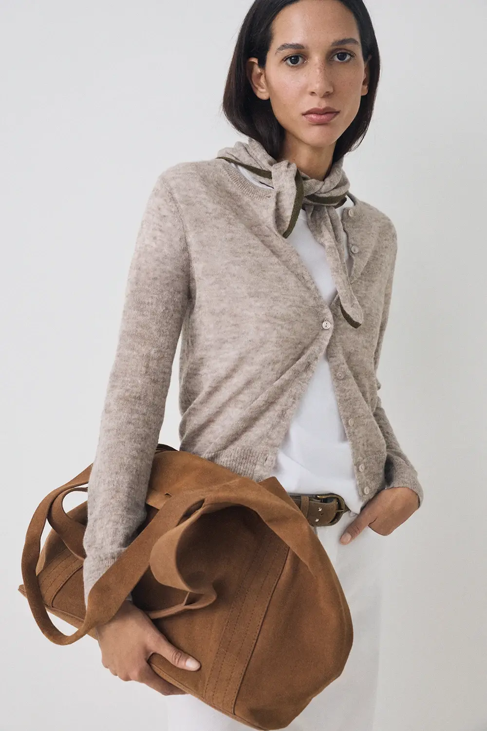 Product descriptionSku:304030-1050 // CARDI.SKIN SET Cardigan and shawl made of blended alpaca wool. Fine-gauge knit. Slightly sheer.Triangular shawl. Crew neck cardigan with fitted cut. Garment length for size S: 53 cm.
