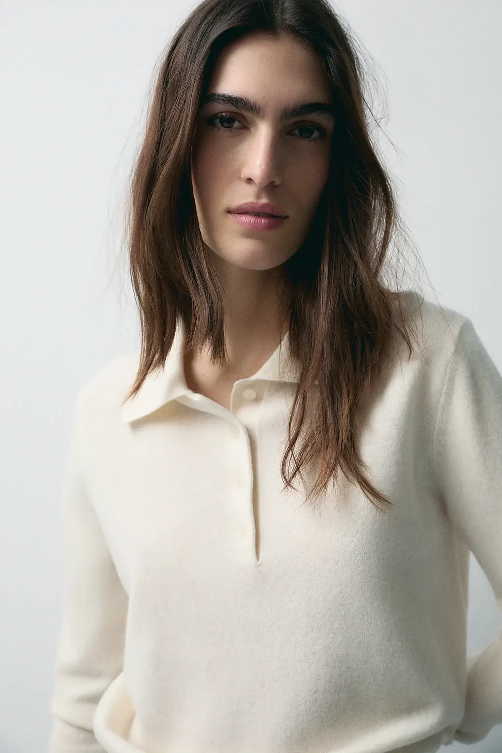 Product descriptionSku:304220-1020 // J.CANDY Fine-gauge 100% wool sweater (gauge 12). Polo collar with 4 buttons. In off-white color. Garment length for size S: 58 cm